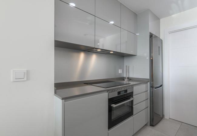 The apartment is tastefully-furnished, is a new build, and is 110 m². The property is located right next to the beach. It has views of the sea and the garden.