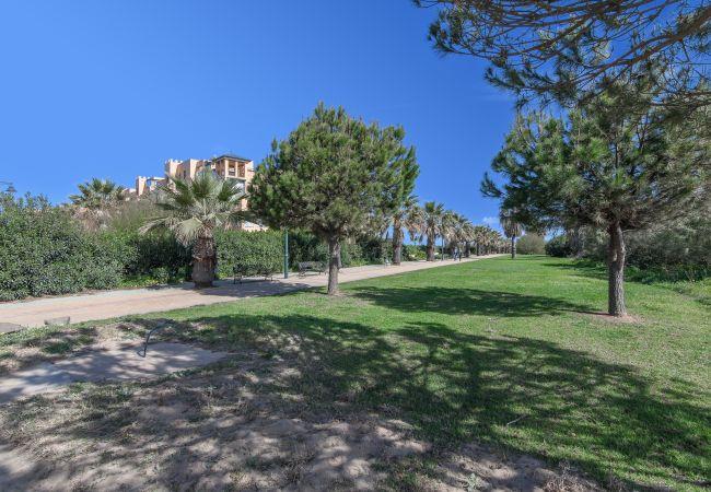 The accommodation is equipped with the following items: lift, garden, garden furniture, fenced garden, 30 m² terrace, iron, internet (Wi-Fi), hair dryer, childrens area, tennis court, paddle tennis court, alarm, air conditioning (hot/cold), air conditioning throughout the house, communal+children's swimming pool, open-air parking in the same building, TV.