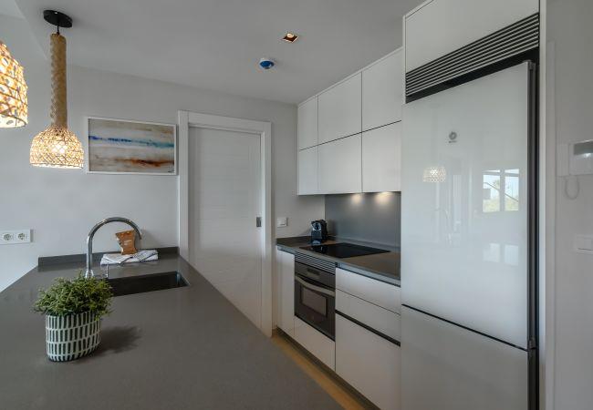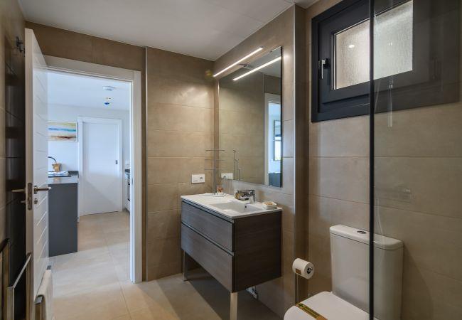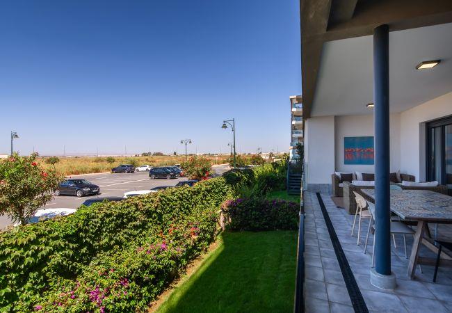 The accommodation is equipped with the following items: lift, garden, garden furniture, fenced garden, 33 m² terrace, iron, internet (Wi-Fi), hair dryer, childrens area, tennis court, paddle tennis court, air conditioning (hot/cold), air conditioning in the living room and in some bedrooms, communal+children's swimming pool, open-air parking in the same building, 1 TV.
