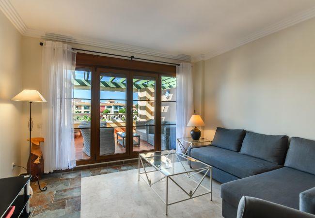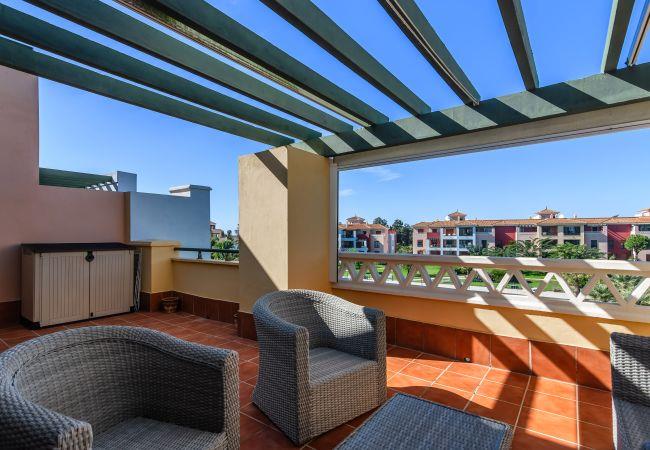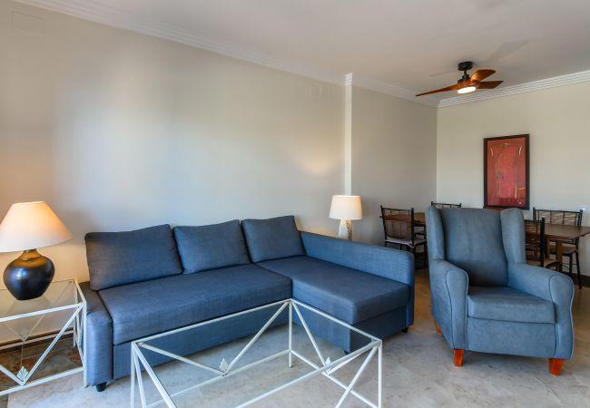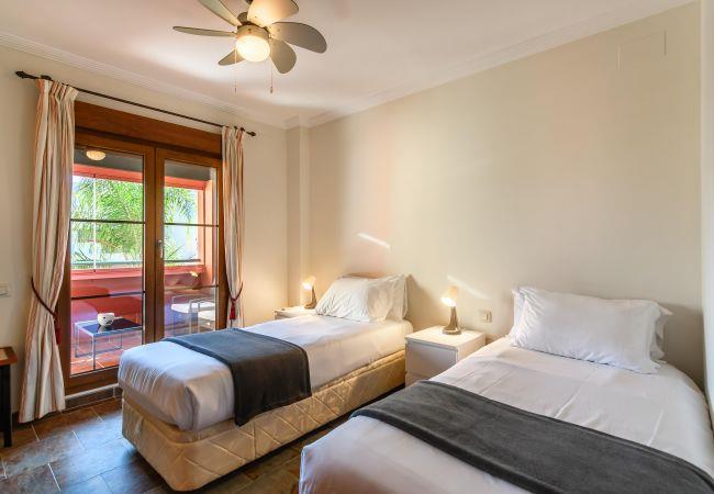 The apartment in Isla Canela has 2 bedroom(s) and capacity for 4 people. Cozy and fully equipped accommodation of 115 m², located on the first line of the golf course, with views of the garden and the golf course. It is located 2 km from the "Isla Canela Old Course" golf course, 3 km from the "Supermercados El Jamón" supermarket, 3 km from the "Playa de Isla Canela" sandy beach, 6 km from the town of "Ayamonte", 72 km from "Faro International Airport", 158 km from "Aeropuerto de Sevilla" and is located in an ideal area for children and within a residential area. It has a garden, garden furniture, fenced plot, 34 m² terrace, internet access (wifi), hairdryer, children's area, tennis court, paddle tennis court, heat pump heating, air conditioning throughout the accommodation, community pool+children's pool, outdoor parking in the same building, 2 fans, 1 TV. The independent kitchen, with a ceramic hob, is equipped with a fridge, microwave, oven, freezer, tableware/cutlery, kitchen utensils, coffee maker and toaster.