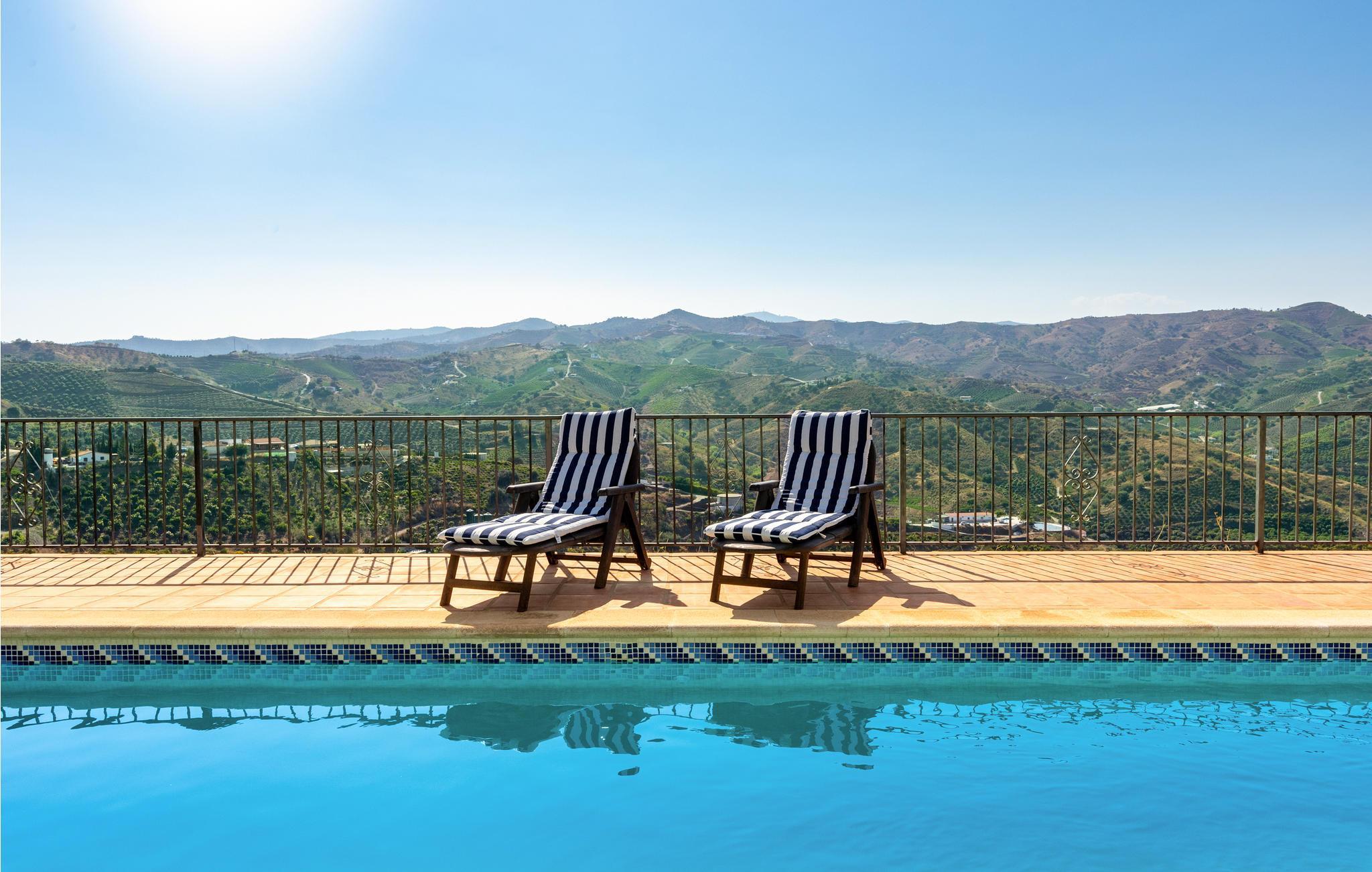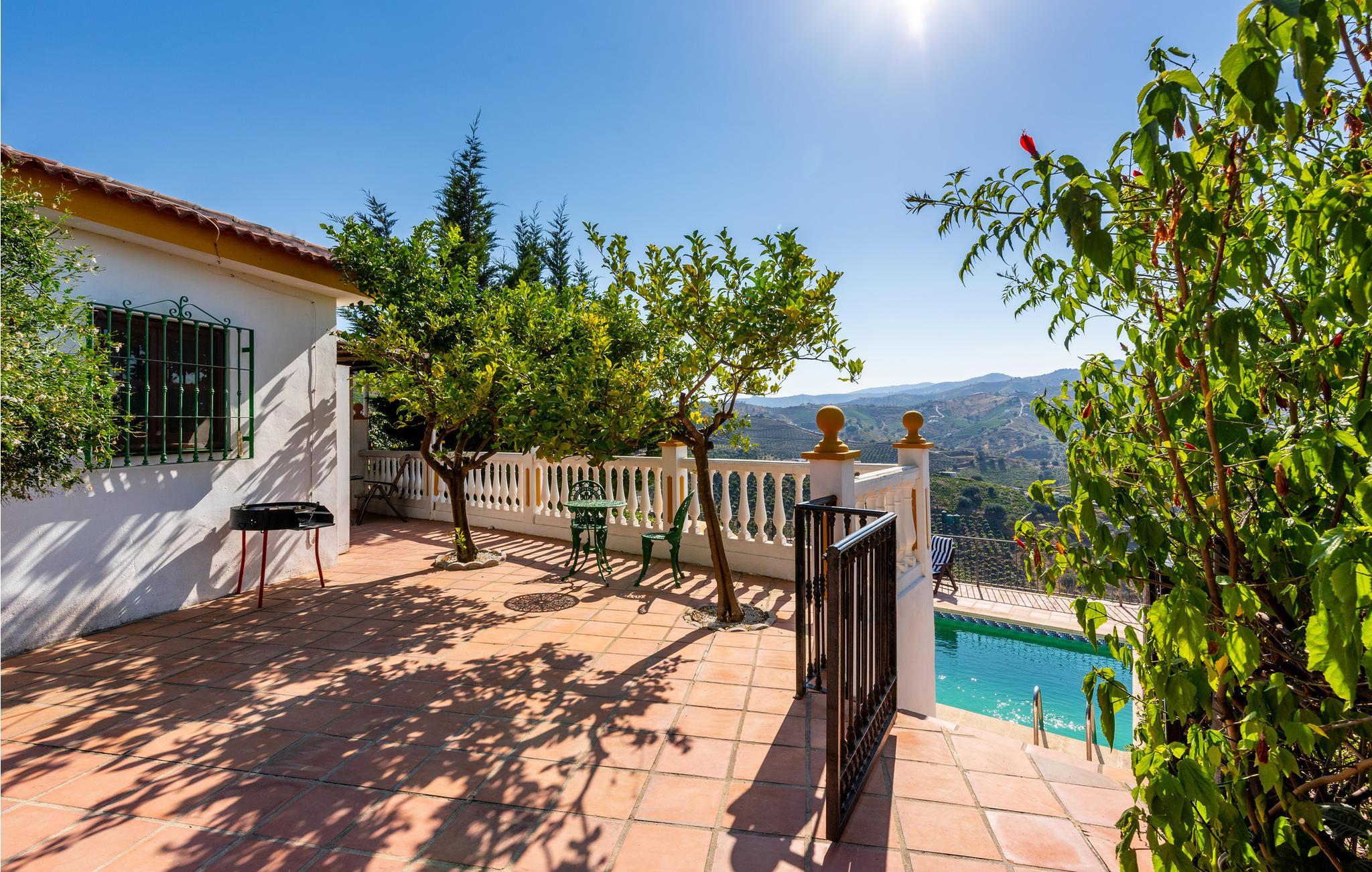 Dieses gemütliche und geräumige Ferienhaus heißt bis zu sechs Gäste willkommen. Das Haus besticht vorallem durch seinen tollen Außenbereich. Auf den teils überdachten Terrassen können Sie morgens frühstücken oder den Tag bei einem Glas Wein aus den Weinbergen vor Ihrer Tür ausklingen lassen. Ein Grill für gemütliche Grillabende steht Ihnen auch zur Verfügung. Auf den gemütlichen Gartenmöbeln können Sie den ganzen Tag über das wundervolle Wetter Südspaniens genießen und das wunderschöne Panorama auf sich wirken lassen.