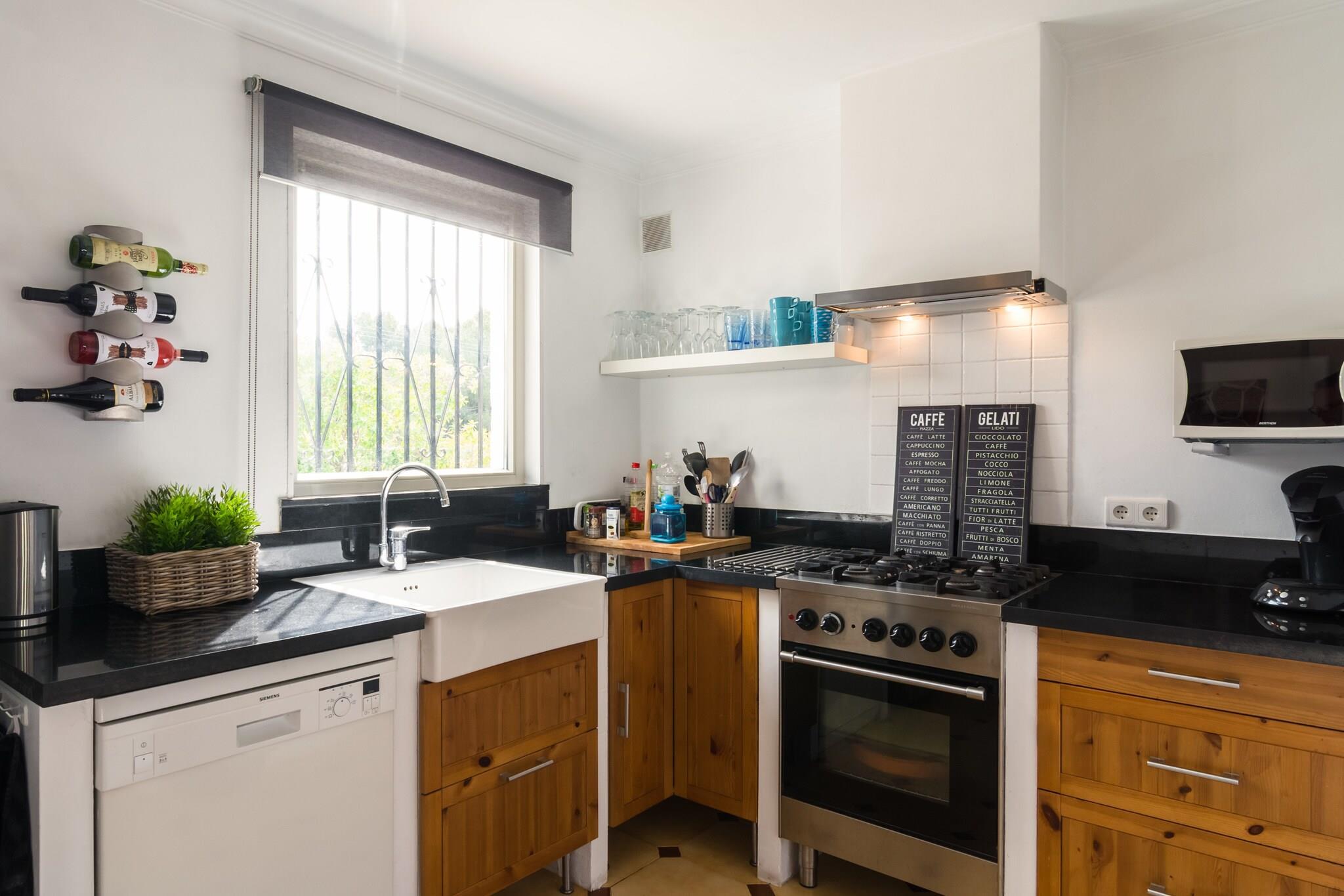Delightful, detached holiday villa with a fully enclosed garden, 3 km from the lively center of Jávea and the pleasant sandy beach of El Arenal. Ideal for a sunny family holiday on the Costa Blanca. The villa is located in a quiet neighborhood within walking distance of a wooded park. Children can play here in the beautifully landscaped playground while you enjoy the peace and nature in the shade of the trees. Admire the beautiful view of the Montgó mountain and take a nice walk there. The hinterland is rich in old castles and picturesque villages where time seems to have stood still. Also worth mentioning is the Cap de la Nau lighthouse, which to this day functions as a beacon for ships at sea and from where you have an impressive view of the Costa Blanca. You will find the necessary cooling in the private swimming pool with outdoor shower and you can enjoy the sun on the covered terrace or on the side terrace with a fig tree, where you can sit in the shade at the cozy dining table. Prepare a delicious platter of barbecue for your dear ones. Nice holiday villa with a very attractive interior. Here you will quickly feel at home!