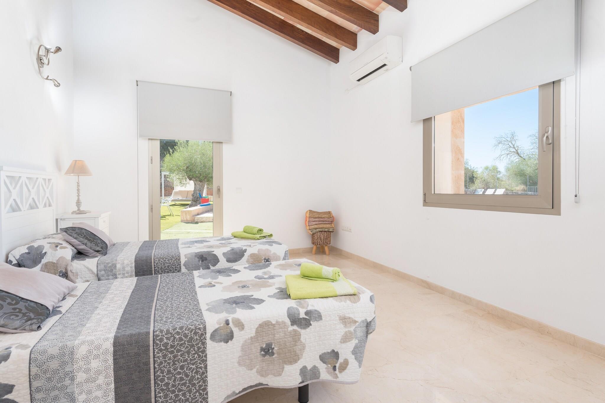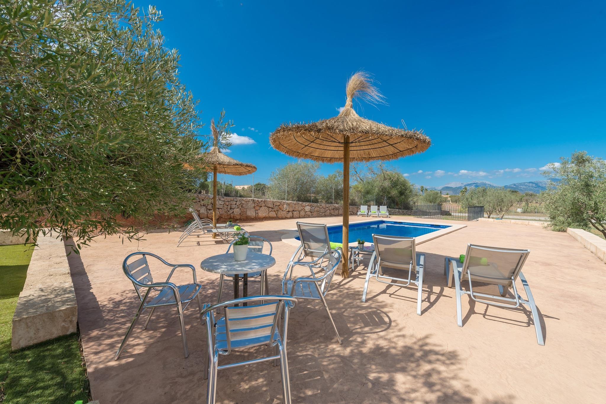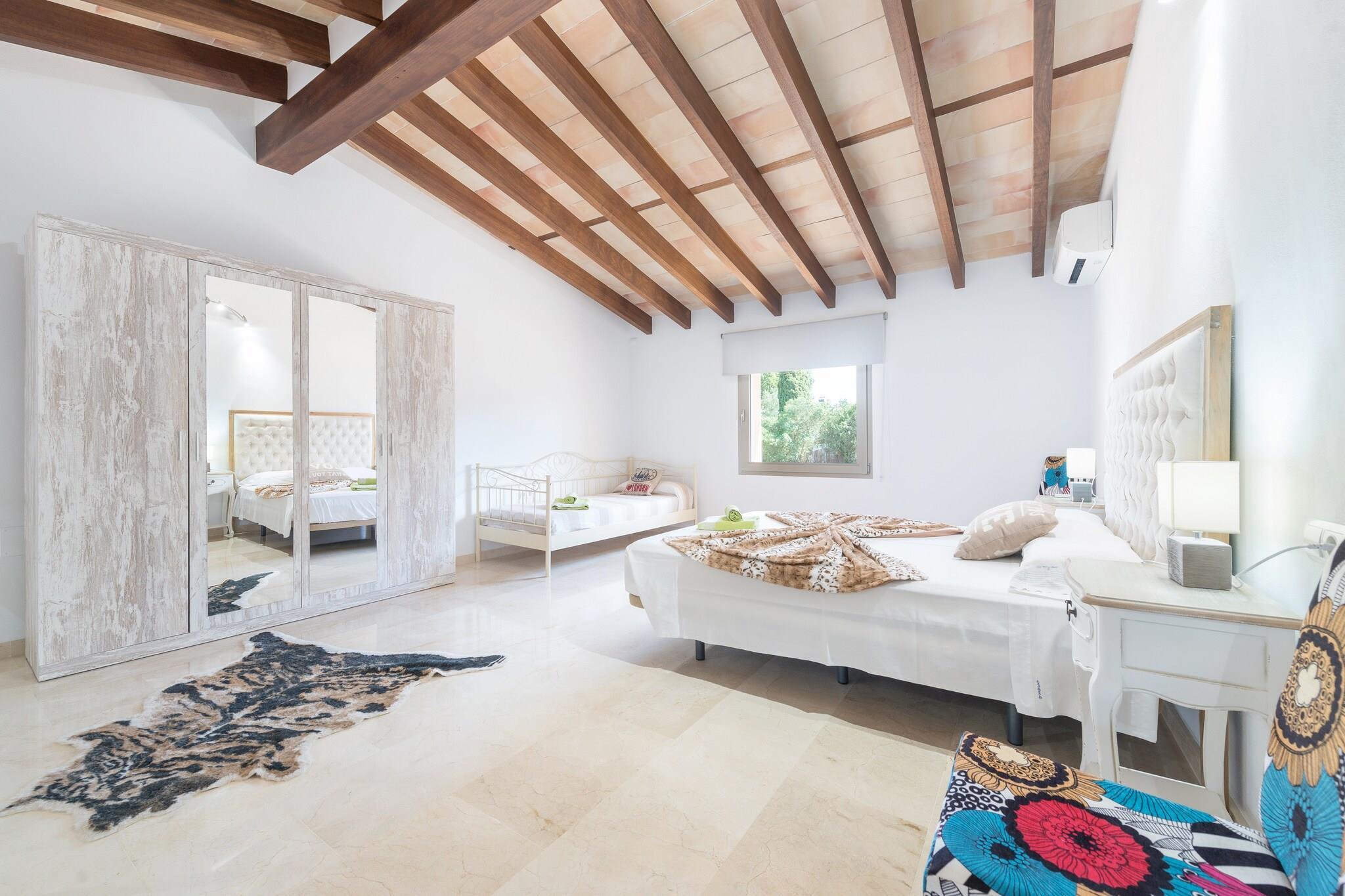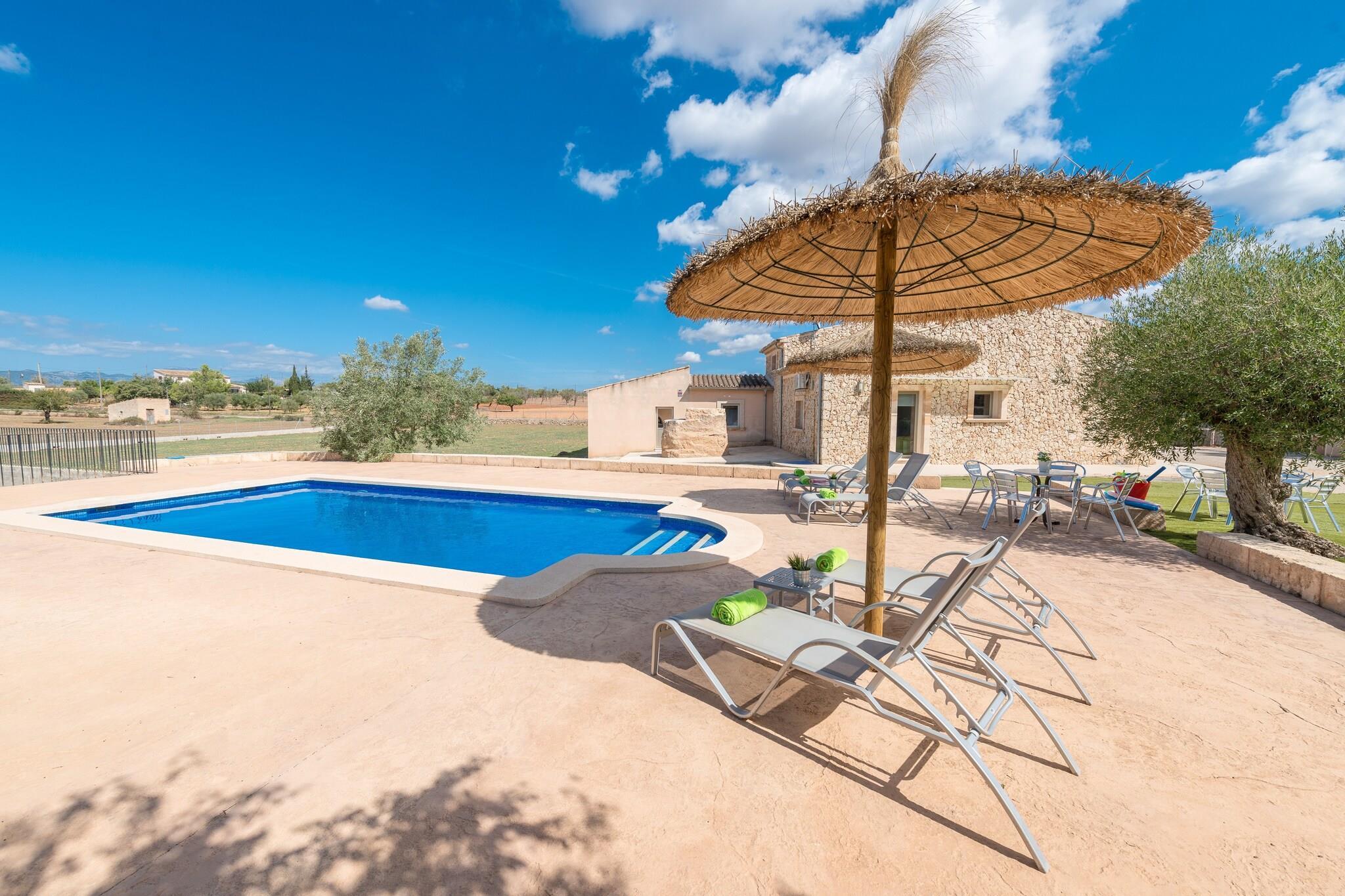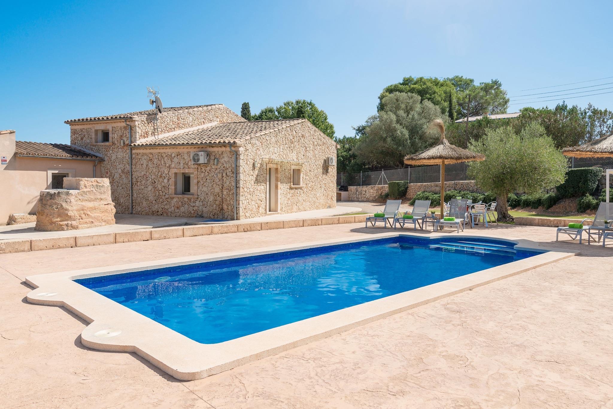 The exteriors of this fantastic house are beautiful. Take a refreshing dip into the 8 x 4 m, chlorine pool or relax on one of the sun loungers. The pool has a depth ranging from 1.25 m to 2.15 m. The property features a porch, a lovely place for al-fresco dining. There is a barbecue for those who like to cook outside. This house offers accommodation on two floors and 149 m2. The modern living area will make you feel at home. There is a cosy sofa, a dining area where you can enjoy long table talks with friends and a satellite-TV. The open plan kitchen with ceramic hob is fully-equipped. You will have access to a washing machine, an iron and an ironing board. There are two bedrooms on the ground floor, 1 with a double bed and an en-suite shower bathroom, and 1 with two single beds. The last one is on the first floor, with a double bed and an en-suite bathroom with a bath. This villa is perfect for your summer holidays as it offers A/C in all three bedrooms. We can supply one cot in case you need one. There are two electric radiators. The small town Jornets forms part of the municipality of Sencelles and is situated in the centre of Mallorca. The villa has total privacy and is surrounded by fields. In the centre of Sencelles there are supermarkets, a few restaurants and all necessary services you may need during your stay. In the city of Inca, which is 6 km away, there are more shopping facilities and restaurants. Try home made food in one of the cellers or visit the market of Inca which takes place every Thursday. A car is essential to go to the beach. You can choose between the beautiful north coast and go to Can Picafort, Son Serra de Marina or Puerto de Alcúdia or explore the wonderful south coast and the natural beaches Es Trenc and Sa Rapita. Consult the advertiser for possible charges. Pets are not allowed. The holding of events is forbidden. There is exterior parking for 6 cars. Distances Beach: 33.4 km - Can Picafort Airport: 39.7 km - Son Sant Joan Golf course: 18.8 km - Golf Puntiró Town: 4.1 km - Sencelles Train station: 9.6 km - Carrer Mitgjorn, Sineu Bus stop: 4.1 km - Plaça Espanya, Sencelles Ferry: 31.8 km - Port d'Alcúdia Hospital: 5.8 km - Hospital Comarcal d'Inca Tourist license: ETV/5878Single Rental Registry: ESFCTU00000701100070212500000000000000000000ETV/58788The Ecotasa (tourist tax) must be paid cash on site when checking in. The amount varies between 0.55EURO/night and guest during the low season and 2.2EURO/night and guest during the high season. The tax is reduced by half from the 9th day of your stay. All guests have to pay the Ecotasa, except people under 16 years. You will have to pay the deposit amount at the arrival to the owner. Electricity (January - December): 0.35 EUR/KW (mandatory)