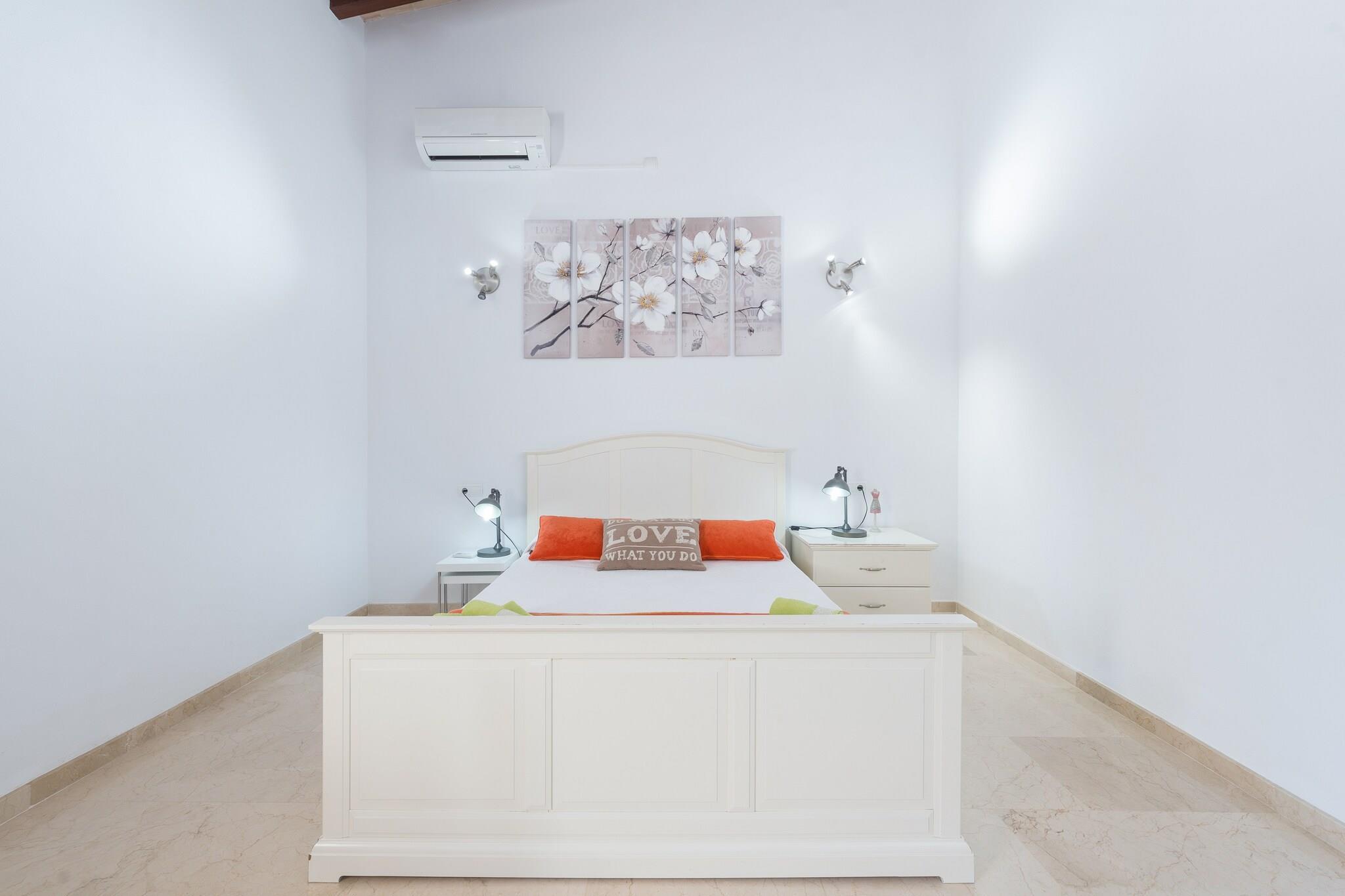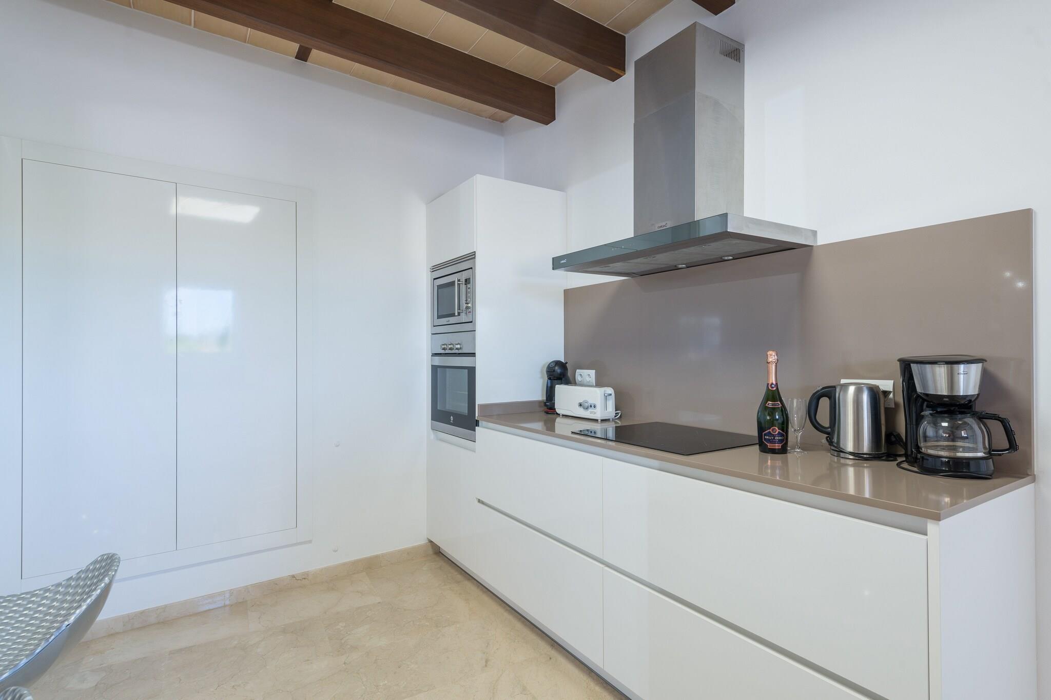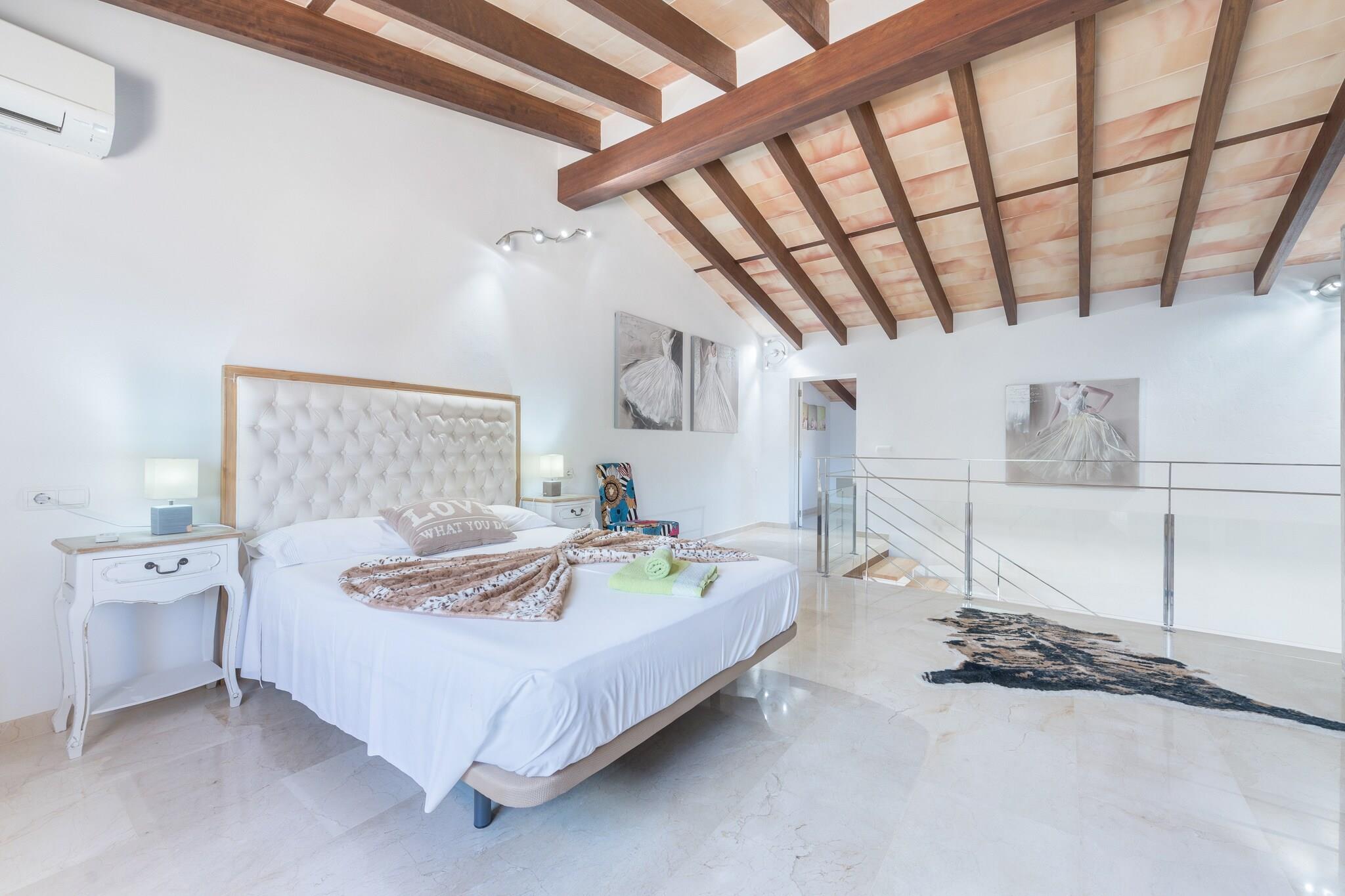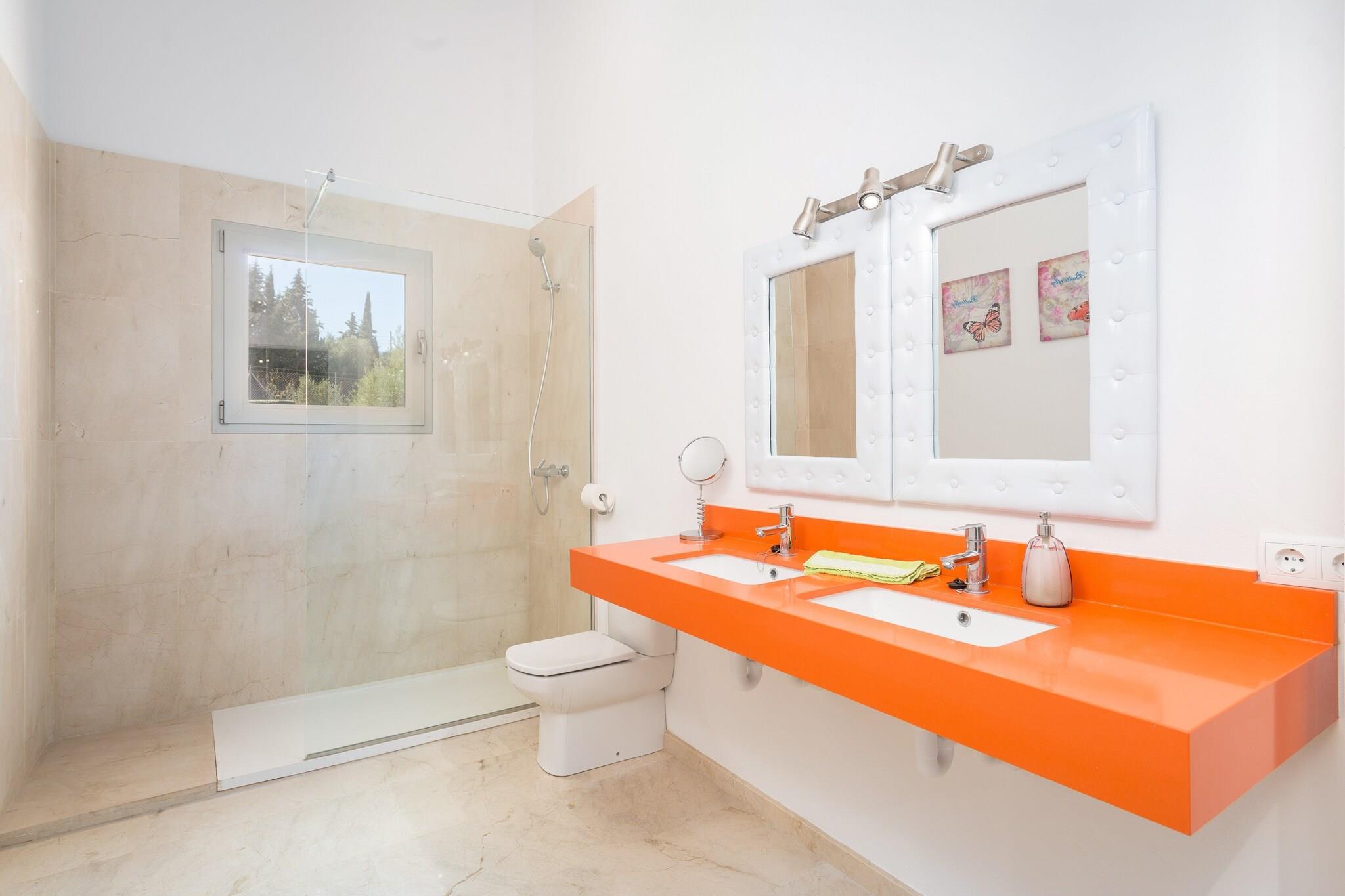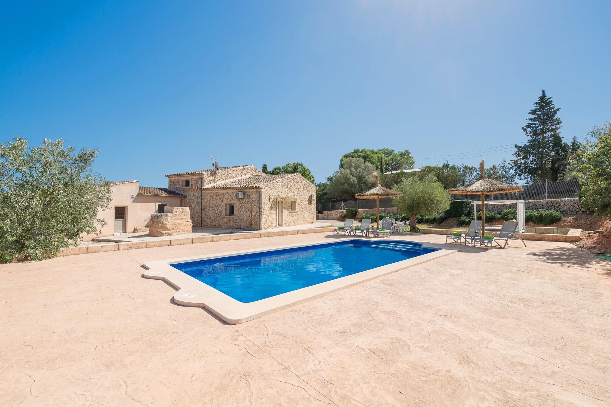 The exteriors of this fantastic house are beautiful. Take a refreshing dip into the 8 x 4 m, chlorine pool or relax on one of the sun loungers. The pool has a depth ranging from 1.25 m to 2.15 m. The property features a porch, a lovely place for al-fresco dining. There is a barbecue for those who like to cook outside. This house offers accommodation on two floors and 149 m2. The modern living area will make you feel at home. There is a cosy sofa, a dining area where you can enjoy long table talks with friends and a satellite-TV. The open plan kitchen with ceramic hob is fully-equipped. You will have access to a washing machine, an iron and an ironing board. There are two bedrooms on the ground floor, 1 with a double bed and an en-suite shower bathroom, and 1 with two single beds. The last one is on the first floor, with a double bed and an en-suite bathroom with a bath. This villa is perfect for your summer holidays as it offers A/C in all three bedrooms. We can supply one cot in case you need one. There are two electric radiators. The small town Jornets forms part of the municipality of Sencelles and is situated in the centre of Mallorca. The villa has total privacy and is surrounded by fields. In the centre of Sencelles there are supermarkets, a few restaurants and all necessary services you may need during your stay. In the city of Inca, which is 6 km away, there are more shopping facilities and restaurants. Try home made food in one of the cellers or visit the market of Inca which takes place every Thursday. A car is essential to go to the beach. You can choose between the beautiful north coast and go to Can Picafort, Son Serra de Marina or Puerto de Alcúdia or explore the wonderful south coast and the natural beaches Es Trenc and Sa Rapita. Consult the advertiser for possible charges. Pets are not allowed. The holding of events is forbidden. There is exterior parking for 6 cars. Distances Beach: 33.4 km - Can Picafort Airport: 39.7 km - Son Sant Joan Golf course: 18.8 km - Golf Puntiró Town: 4.1 km - Sencelles Train station: 9.6 km - Carrer Mitgjorn, Sineu Bus stop: 4.1 km - Plaça Espanya, Sencelles Ferry: 31.8 km - Port d'Alcúdia Hospital: 5.8 km - Hospital Comarcal d'Inca Tourist license: ETV/5878Single Rental Registry: ESFCTU00000701100070212500000000000000000000ETV/58788The Ecotasa (tourist tax) must be paid cash on site when checking in. The amount varies between 0.55EURO/night and guest during the low season and 2.2EURO/night and guest during the high season. The tax is reduced by half from the 9th day of your stay. All guests have to pay the Ecotasa, except people under 16 years. You will have to pay the deposit amount at the arrival to the owner. Electricity (January - December): 0.35 EUR/KW (mandatory)