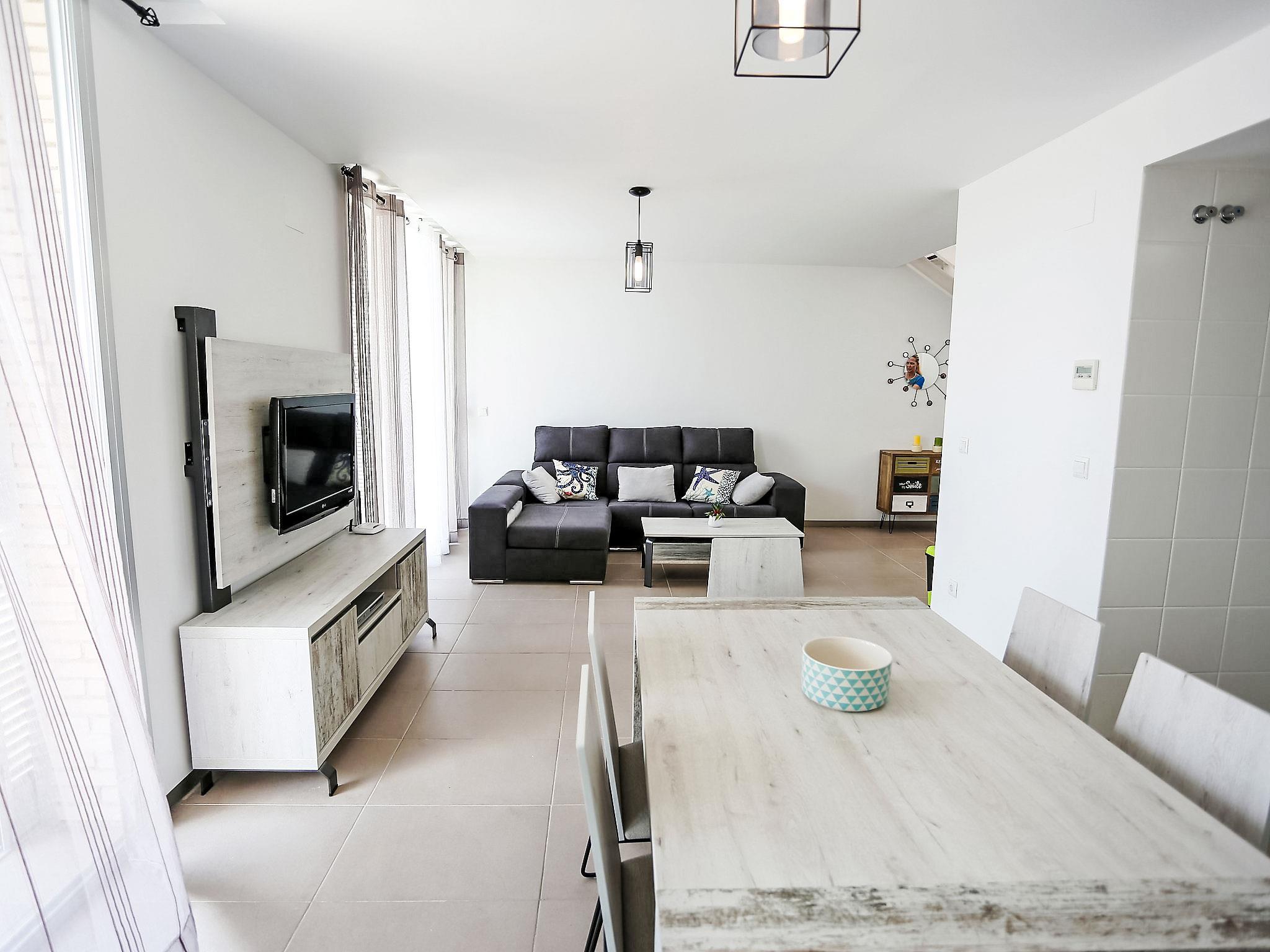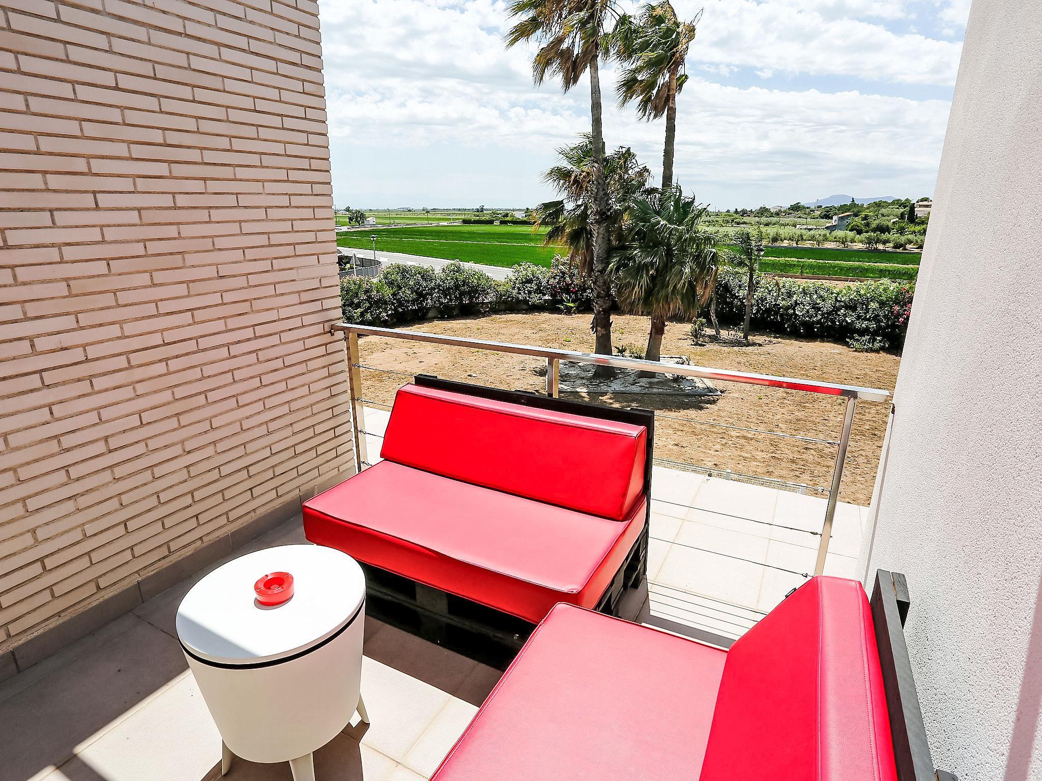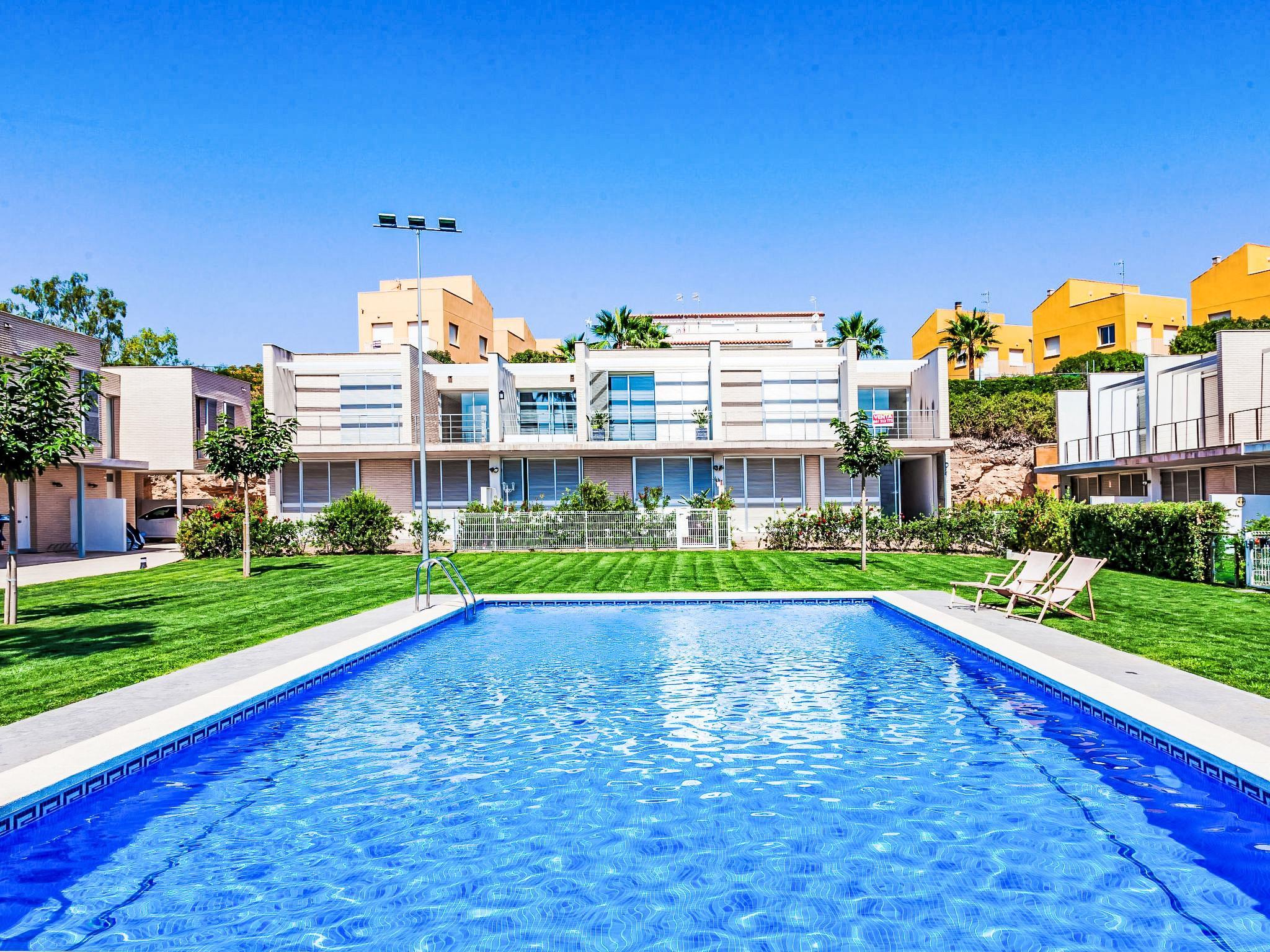 Very modern, cosy, comfortable terraced house "Estrella", 2 storeys, built in 2011. Residential area (villas), 110 m from the sea, 100 m from the beach. For shared use: park (fenced), large garden (fenced), swimming pool (20 x 8 m, seasonal availability: 01.Jun. - 30.Oct.). Outdoor shower, patio. Private: small, beautiful garden. Patio, garden furniture. In the house: internet access, WiFi, air conditioning, washing machine. Parking (for 2 cars) at the house. Grocery 1.5 km, restaurant 800 m, bus stop 11 km, railway station 2 km. Sports harbour 2 km, golf course (18 hole) 5 km, surf school 20 km. Nearby attractions: Port Aventura 60 km, Parque natural Delta del Ebro 20 km. Please note: car recommended.