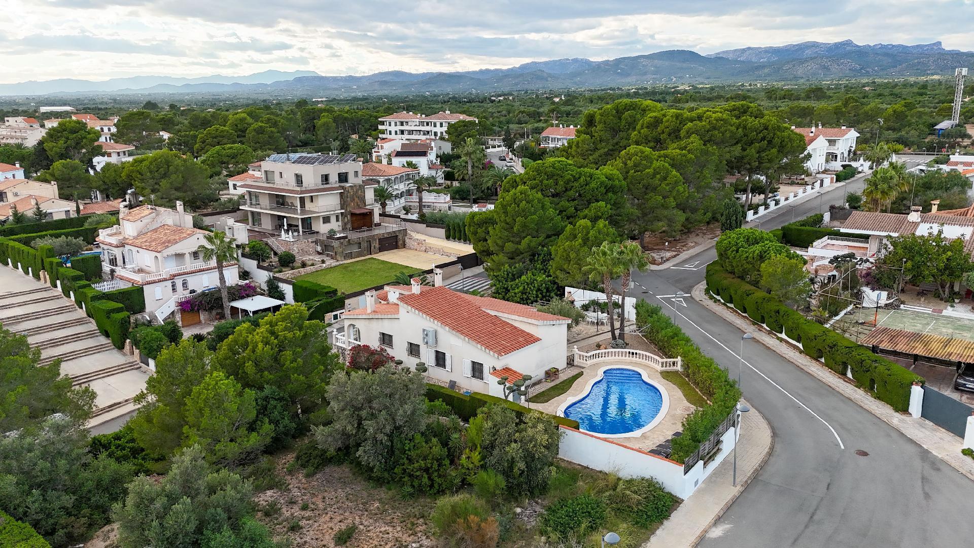 This stunning, detached villa with a large house and pool is located in a popular neighbourhood in a swimming cove away from the centre of town.