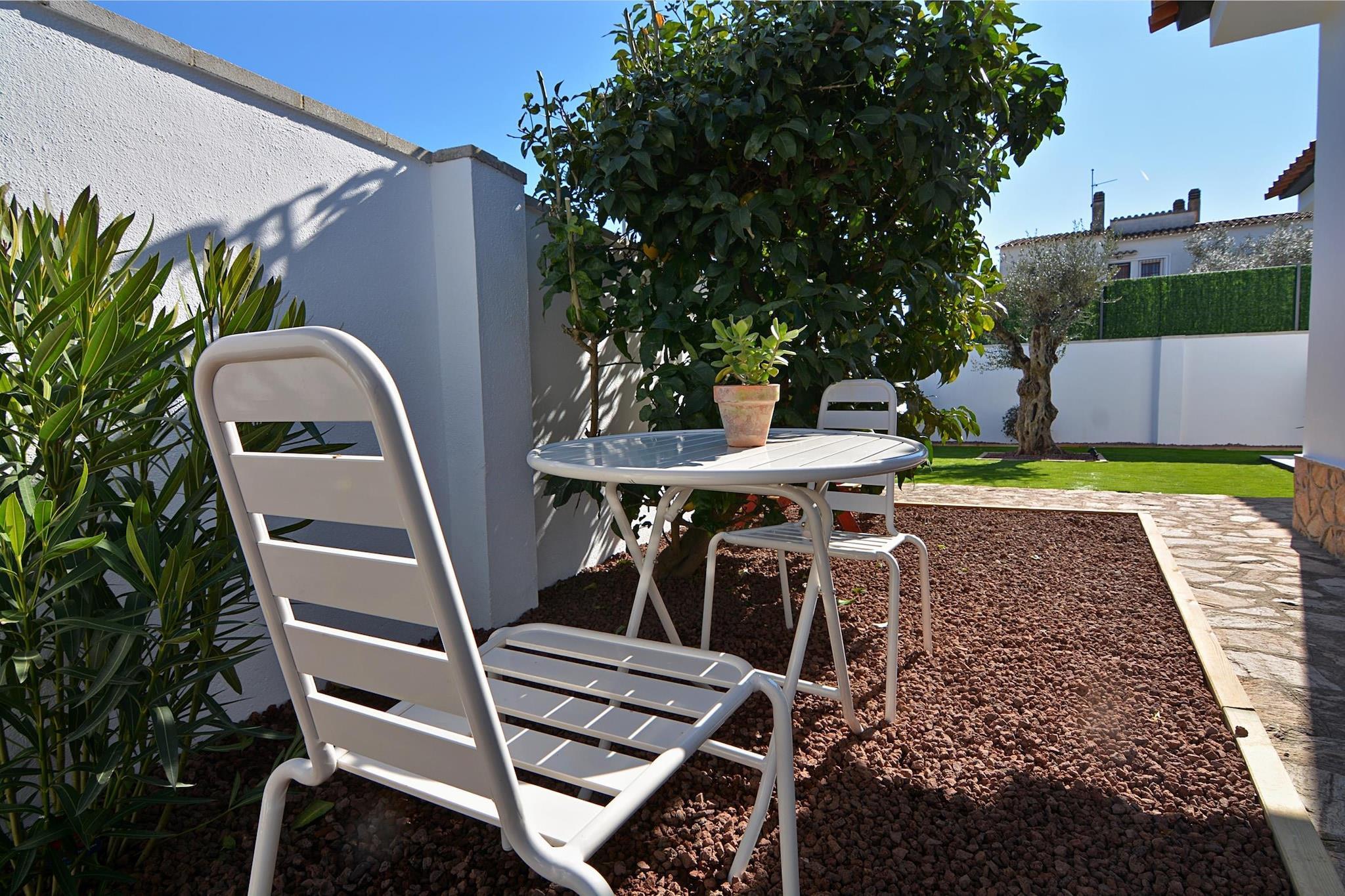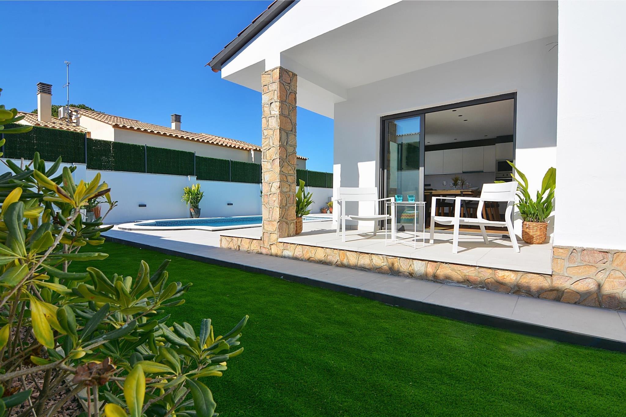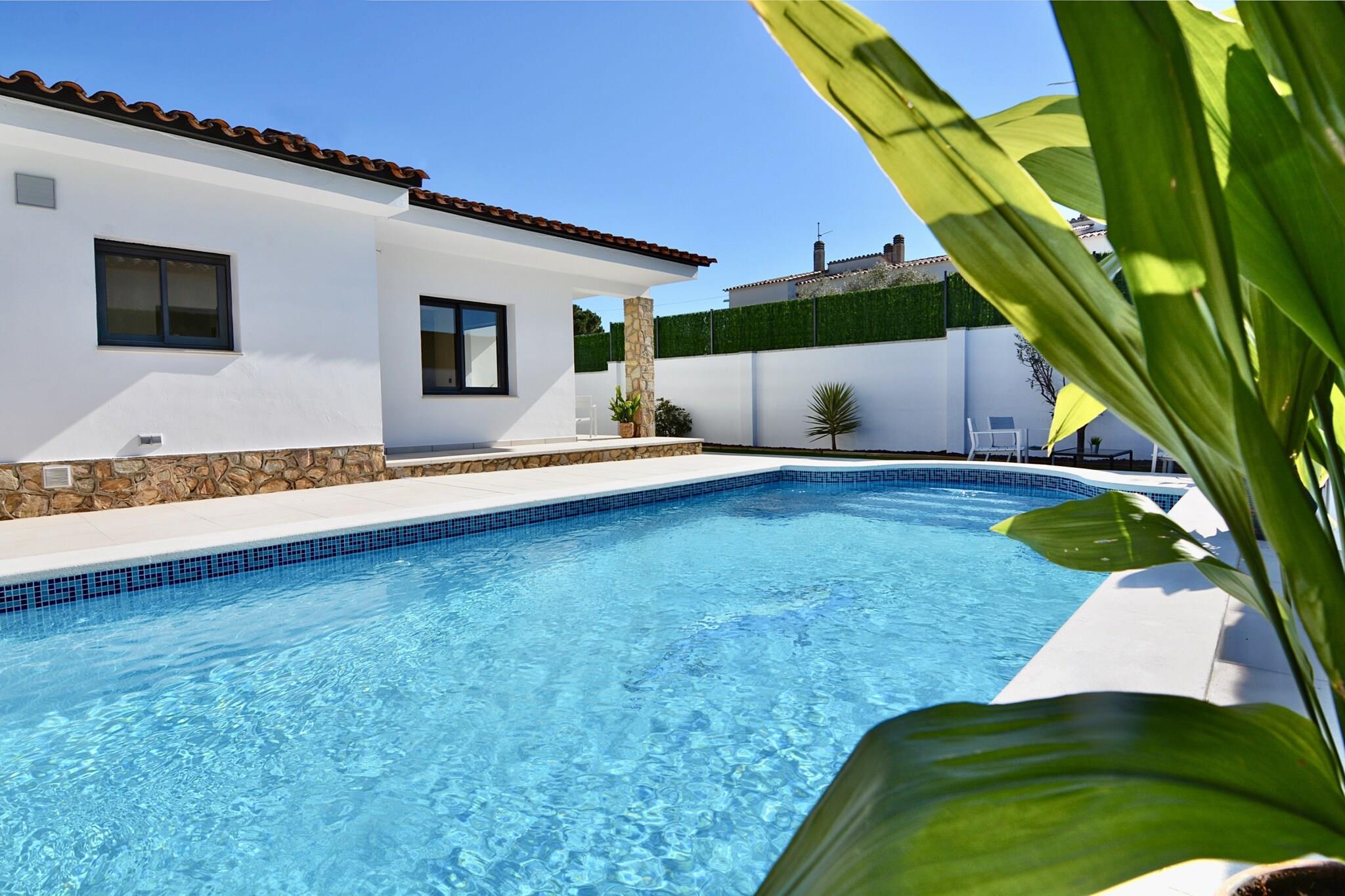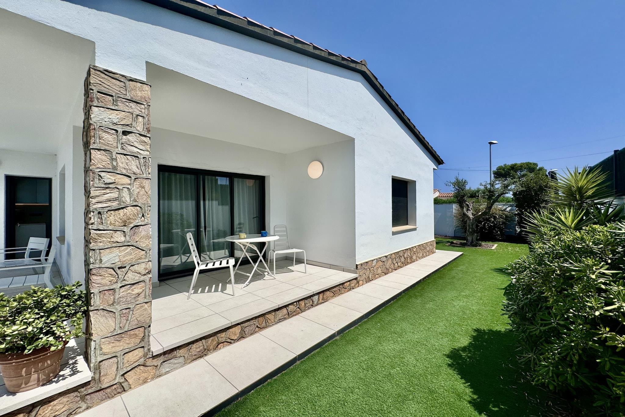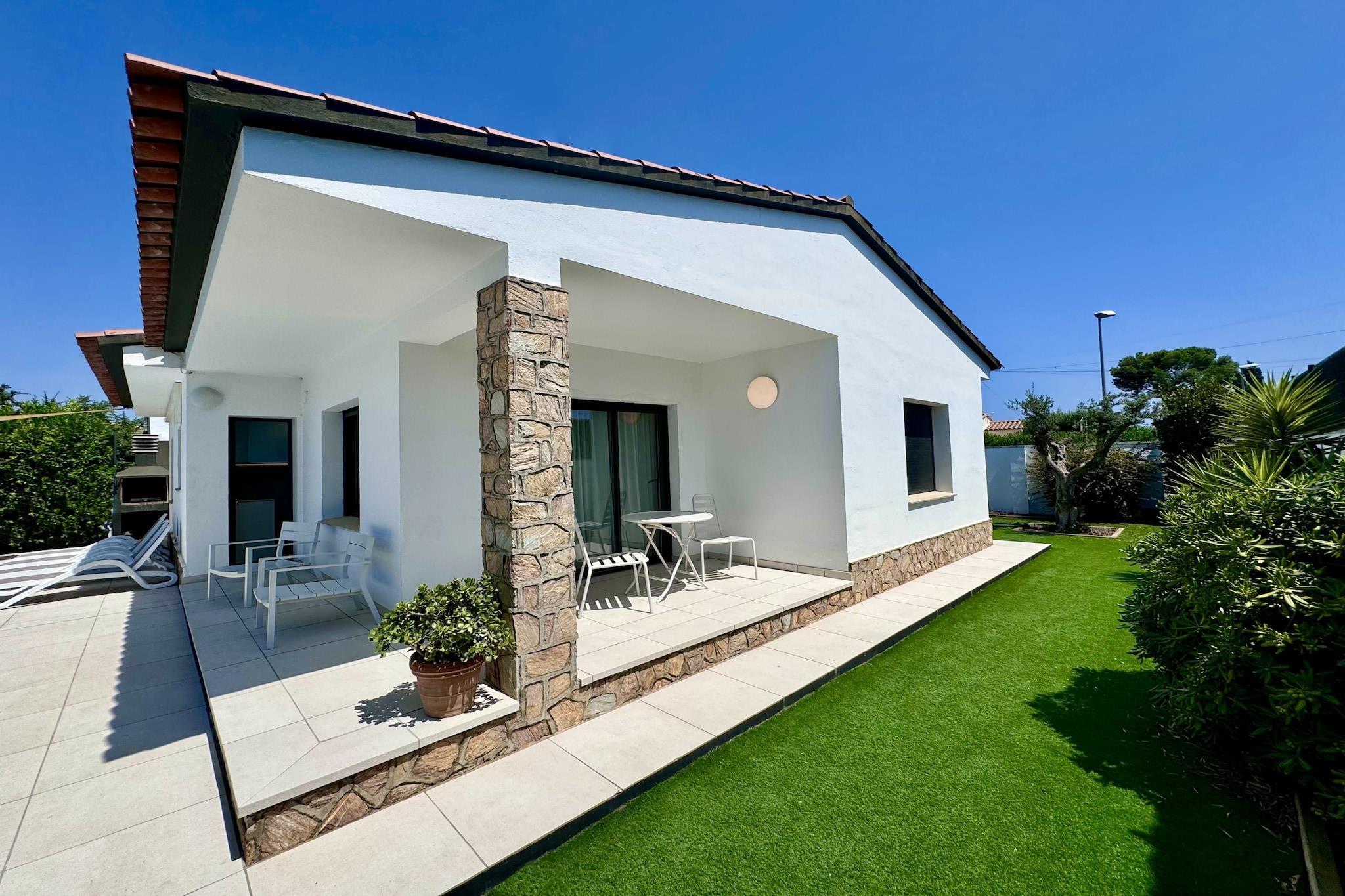 A spacious villa ideal for families or groups, this homely holiday home accommodates up to 8 guests in three bedrooms. It offers two double beds, two single beds, and a bunk bed, making it suitable for both adults and children. The house includes a large living area, a modern open-plan kitchen, and two bathrooms with showers. Outside, guests can enjoy a private swimming pool, a large garden, and a terrace perfect for al fresco dining. Pets are welcome, provided they are not of a dangerous breed and weigh under 5 kg. Optional extras such as cots, high chairs, and pool towels are available for rent. Set in a peaceful residential area of L’Escala, the villa is just a 10-minute walk from Riells Beach. Known for its shallow waters and soft sand, the beach is ideal for children. The nearby promenade features a variety of restaurants, bars, shops, and water sports facilities. Guests will also find supermarkets and entertainment venues within walking distance. Transport options include a bus station a short drive away, while the Girona-Costa Brava Airport is about 53 km from the property, offering convenient access for international travelers. Additional amenities enhance the villa's comfort and practicality. These include a washing machine, internet access, heating, air conditioning (depending on the season), and a garage for parking. The kitchen is fully equipped with a ceramic hob, oven, refrigerator, freezer, dishwasher, microwave, coffee machine, toaster, kettle, and juicer. (Note: The communal swimming pool is available exclusively during July and August.)