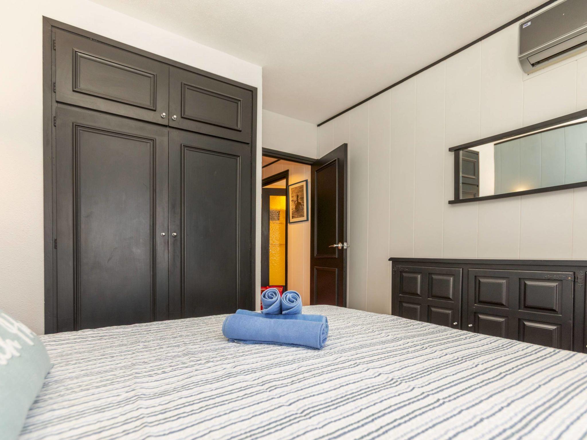 "Salines XVII", 2-room apartment 45 m2 on 2nd floor. Practical furnishings: living/dining room with 1 double sofabed, digital TV, air conditioning and forced-air heating. 1 room with 1 french bed (160 cm, length 190 cm), air conditioning and forced-air heating. Kitchen-/living room (oven, dishwasher, 4 ceramic glass hob hotplates, toaster, kettle, microwave, freezer, electric coffee machine). Shower/WC. Terrace furniture. Very beautiful view of the sea and the countryside. Facilities: washing machine, iron, hair dryer. Internet (WiFi, free). Please note: maximum 1 pet/ dog allowed. TV only ES. HUTG-018271 // Reg. Nr.: ESFCTU00001700700066921300000000000000000HUTG-0182712