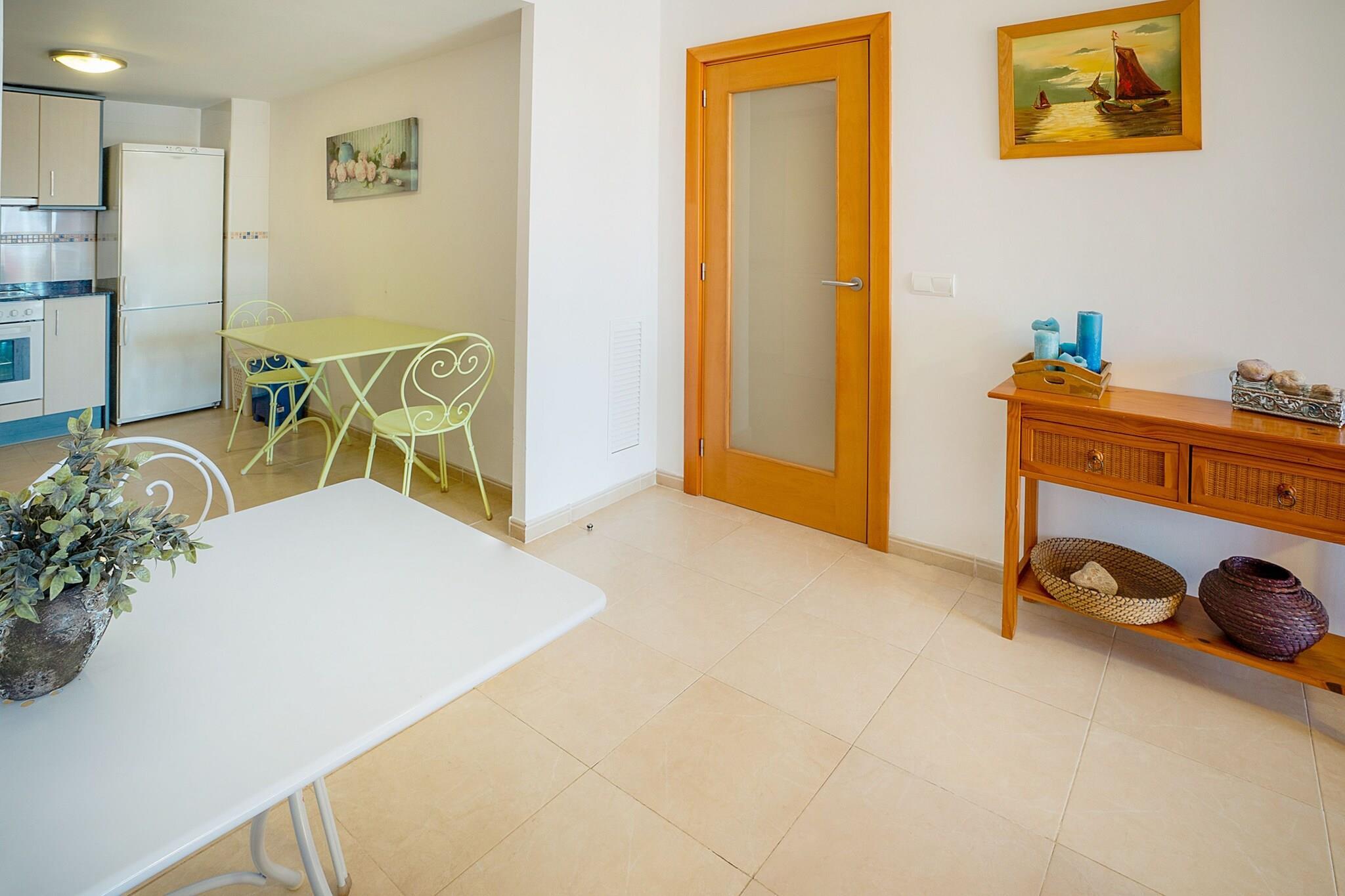 This is a cosy 1-bedroom apartment in Urbanització l'Eucaliptus. Only 100m from the beach, the home is perfect for a seaside vacation. It is ideal for a couple or small family. The apartment is in the middle of a nature reserve 8 km from Amposta. The area around the home is ideal for hiking and for nature lovers. The Delta del Ebro National Park is nearby, where you can fish and canoe. Els Muntells is 3 km away and has various shops, bars and restaurants. Only 10 km from the apartment you will find the beach and fishing village of St. Carles de la Ràpita with its beautiful port. There's a restaurant and supermarket 4.5 km away. The apartment is located on the first floor and has a lift. The shared roof terrace offers a beautiful view of the surrounding area and the sea. There's also a shared swimming pool. It is air conditioned and offers bed linen, kitchen linen and bath towels.
