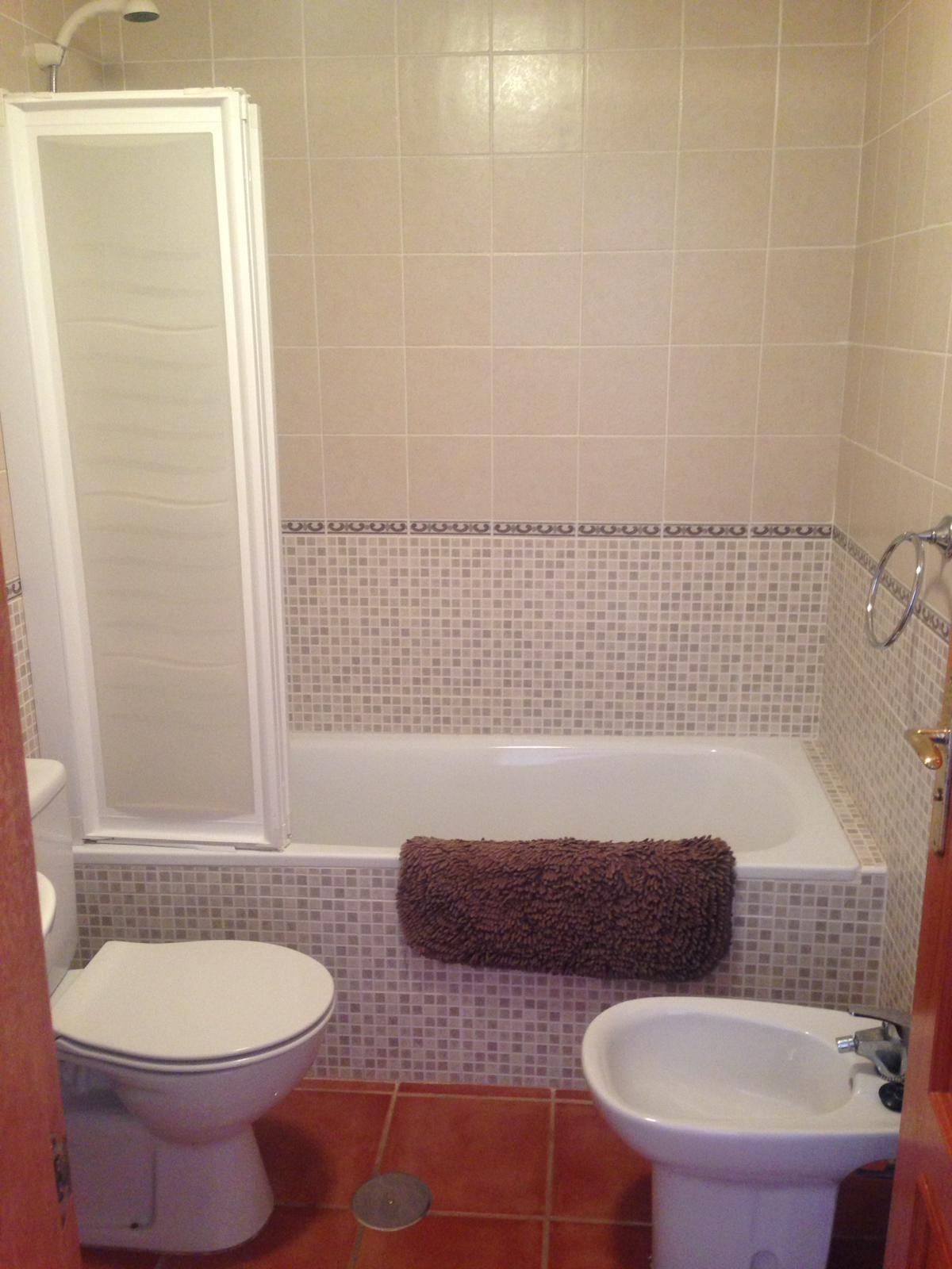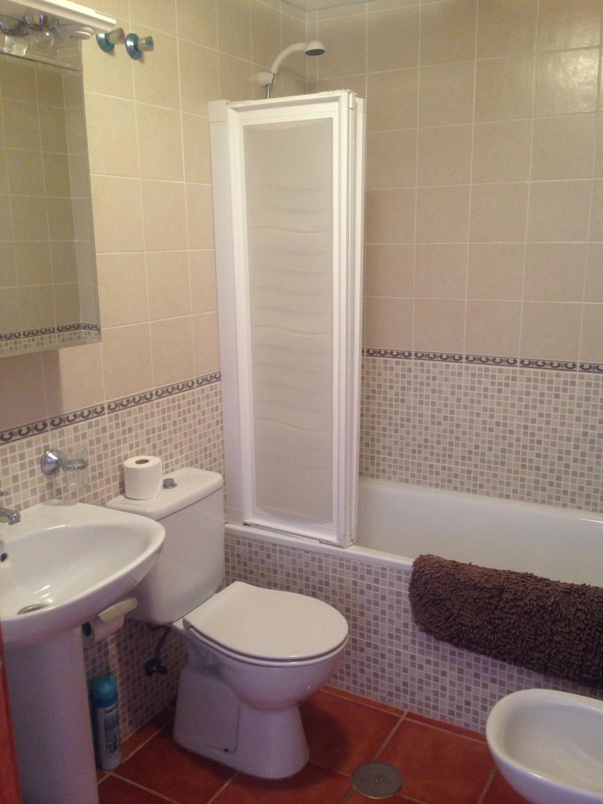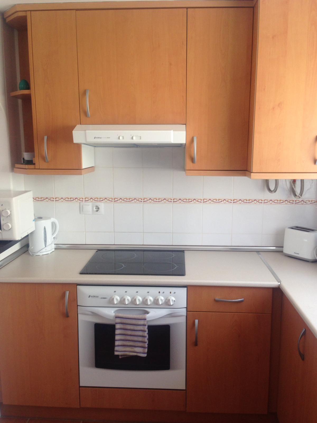 The accommodation has some stairs to the front door and stairs to the roof terrace and comprises: living room with sofa and two separate chairs, dining table with 4 chairs, DVD player, Spanish TV and WiFi available in the property. A balcony off the lounge offers you some views of the beautiful sea and mountains, with a set of table and chairs for relaxing. The kitchen has a large fridge, microwave, kettle, oven, hob, toaster and washing machine.