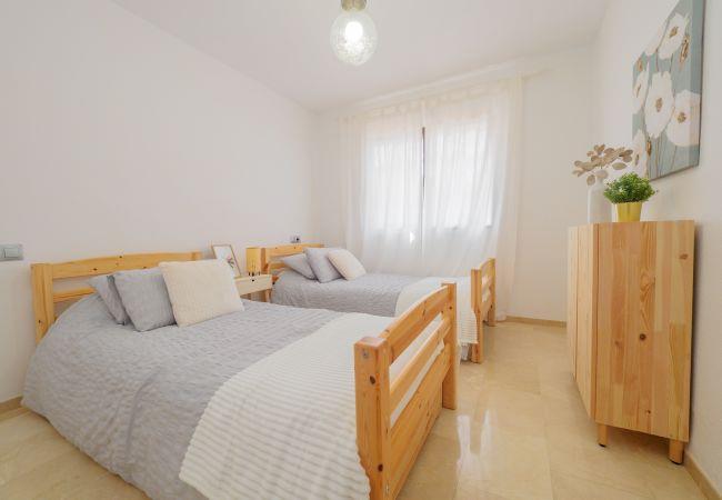 The apartment has two bedrooms separated by a spacious bathroom with a shower tray. The main bedroom has a double bed and direct access to the terrace, while the second bedroom has two single beds, one of them a trundle bed, which allows comfortably accommodating a fifth person ? .