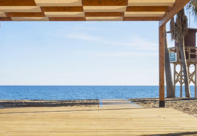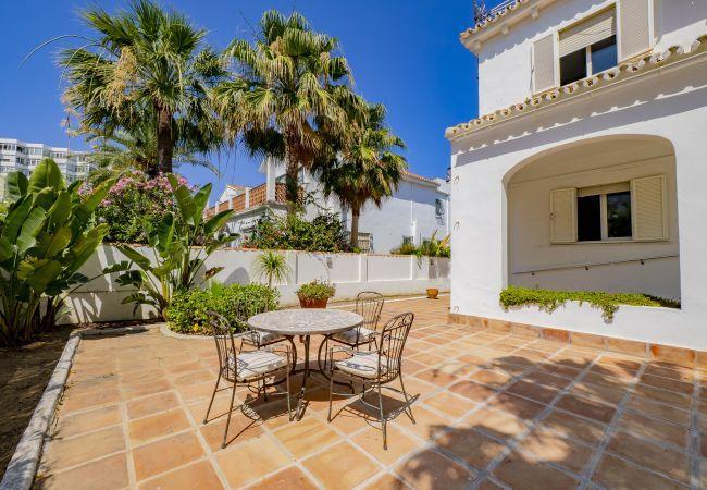 Holiday villa with 7 bedrooms just 100 m from the beach with private pool in La Cala de Mijas, ideal for large groups, with garden, terrace, air conditioning and all the amenities for unforgettable holidays.