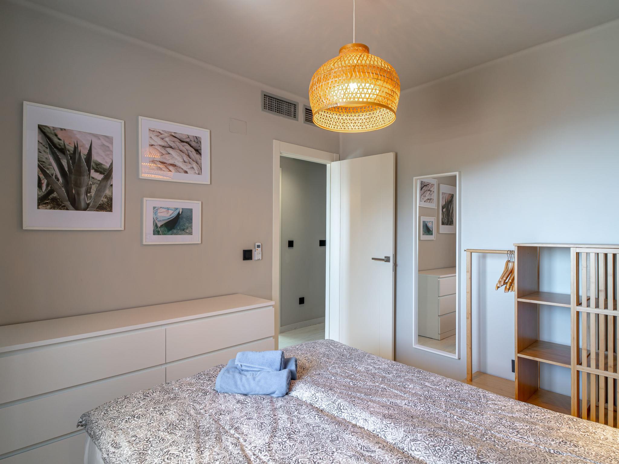 "Melon", 4-room terraced house 135 m2. Spacious and bright, comfortable and tasteful furnishings: living/dining room with digital TV and air conditioning. Exit to the terrace. Kitchen (oven, dishwasher, 4 ceramic glass hob hotplates, toaster, kettle, microwave, electric coffee machine). Shower/WC. No heating option. Upper floor: 1 room with 1 french bed (140 cm, length 200 cm), air conditioning. Exit to the terrace. 1 room with 1 french bed (140 cm, length 200 cm), air conditioning. Exit to the terrace. Bath/WC. 2nd upper floor: 1 room with 1 french bed (140 cm, length 200 cm), air conditioning. Exit to the terrace. Shower/WC. 2 large terraces. Terrace furniture. Panoramic view of the sea. Facilities: washing machine, iron, baby cot for up to 3 year olds, hair dryer. Internet (WiFi, free). VUT/GR/09675 // Reg. Nr.: ESFCTU0000180160006597030000000000000000VUT/GR/096753