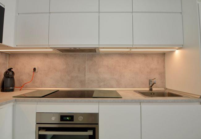 The apartment has a double bed, a bunk bed and a sofa bed.