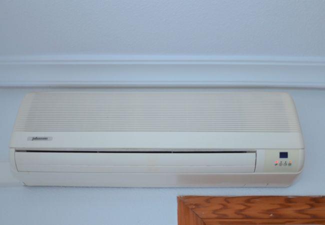 In the second bedroom there is a large bed, dresser and wardrobe; the view from this bedroom opens to the sea.