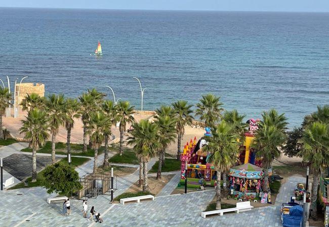 On the roof terrace, where you can also hang your laundry, you will experience a fantastic view of the plaza and the sea. You leave the house, walk 50 metres across the plaza and find yourself directly on the kilometre-long sandy beach. There is a bakery and pharmacy in the same house. Within a radius of 100 metres you will find all the necessary things for your daily needs such as a supermarket, bank, butcher's shop, restaurants, cafés as well as other small shops.