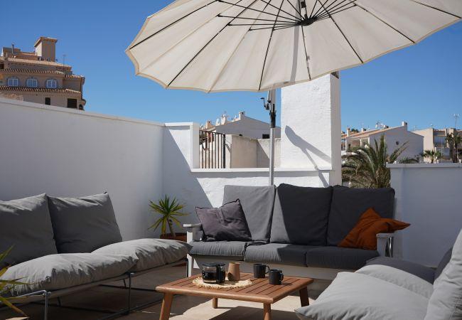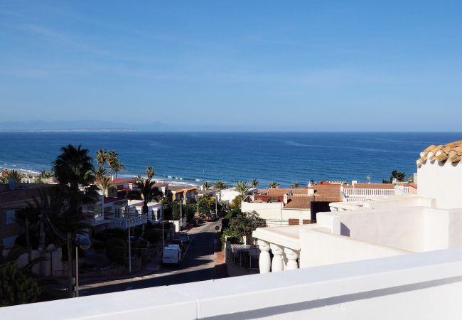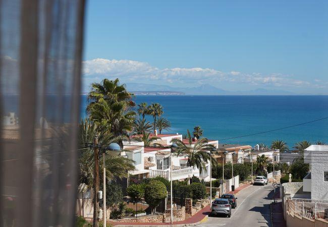 The beautiful bungalow with 2 floors and barbecue area and solarium with sea views, located in Torrevieja, in the Torrelamata neighborhood. It has 2 bedrooms with 1 double bed and 2 single beds just 650m from Cabo Cervera beach, one of the most beautiful sandy beaches in Torrevieja.