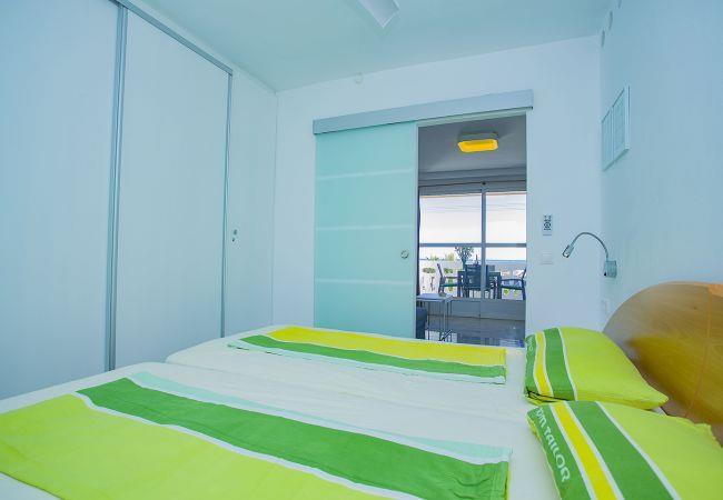 The charming apartment is equipped with all comforts and can accommodate 4 people. From the large living room you have a direct view of the sea. 1 bedroom with a double bed. The apartment has a fully equipped kitchen and a shower room. There is an elevator available. It has air conditioning in the living room.