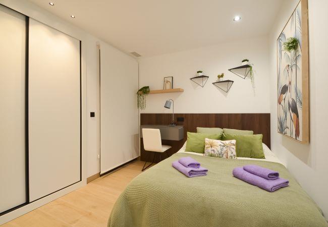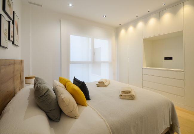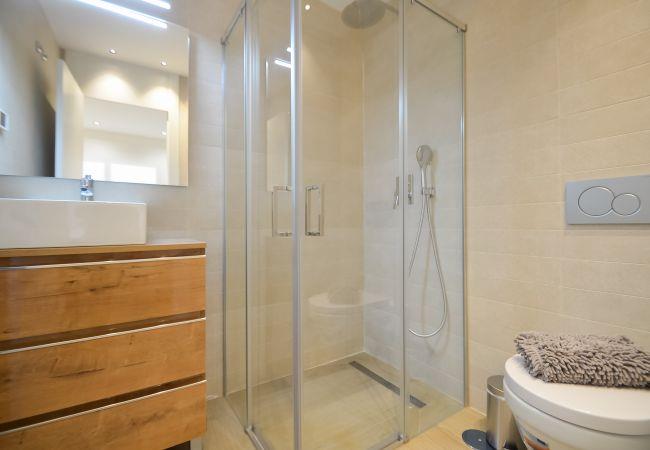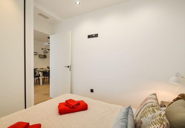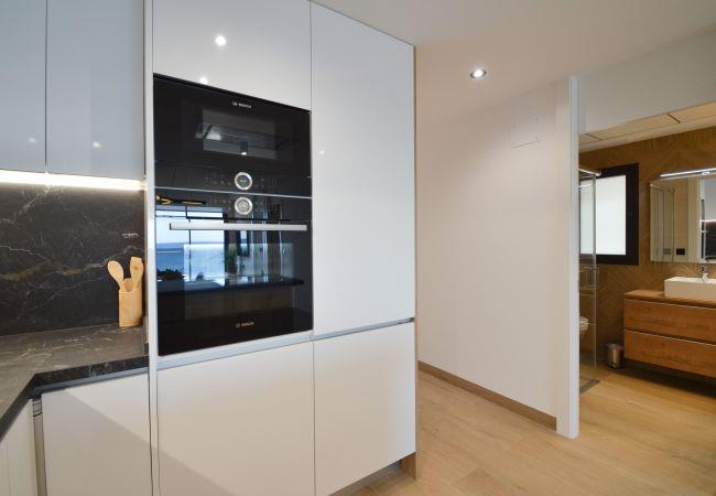 It consists of 3 bedrooms, 2 bathrooms with shower, living room with terrace overlooking the sea with capacity for 6 people on the 4th floor with elevator. It has 3 double beds, a fully equipped kitchen with all the necessary appliances, such as a fridge, microwave, freezer, washing machine, dryer, dishwasher, ceramic hob, oven, cutlery, kitchen utensils, coffee maker, toaster and kettle. The house has WIFI and central air conditioning (hot/cold).