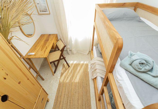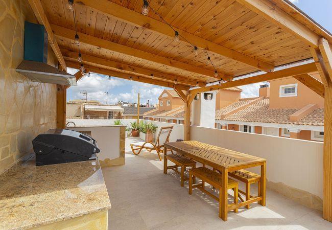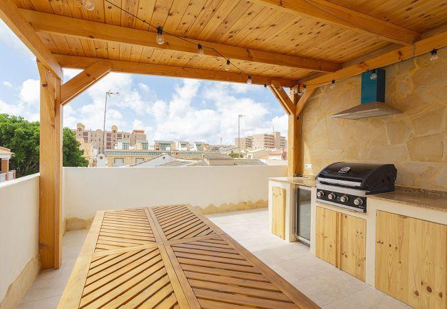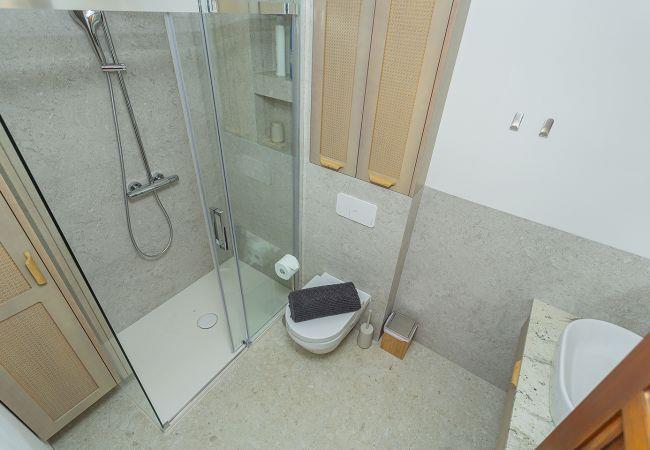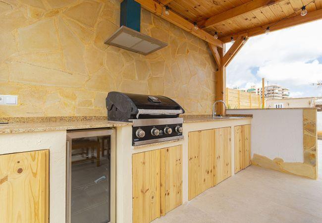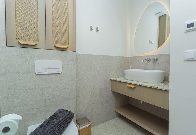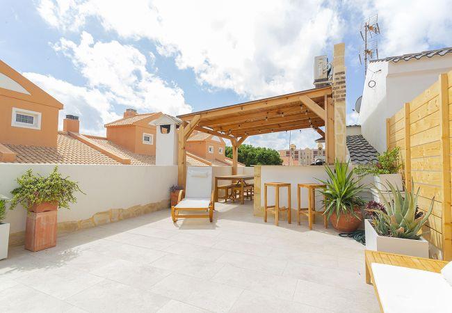 Town beach house 20 m from the beach. This unique duplex apartment is equipped with all the highest-level comforts you can expect. the apartment decorated in a beach style immediately after entering makes you feel that you are on vacation, it gives you a sense of relaxation and holiday vibes. The apartment consists of a living room open to the kitchen and dining room with a high-class 55-inch Samsung TV. The kitchen is equipped with all necessary accessories and additionally a water filtering station with osmosis for drinking water. Three bedrooms equipped with Duxiana beds - beds that can be found in the best hotels in the world. they give you unforgettable sleeping comfort. They can accommodate 6 people. The bathroom offers a very large shower cabin with a rain shower, wooden furniture and Villeroy & Boch equipment for the highest comfort. The best surprise of this house is the huge roof terrace with an outdoor kitchen equipped with a large gas grill and a fridge for drinks and wine. there you will find privacy and a place to celebrate food and life with family and friends. Additional advantages of this property include amenities such as air conditioning in each room and a heated floor, which is perfect for the winter months.