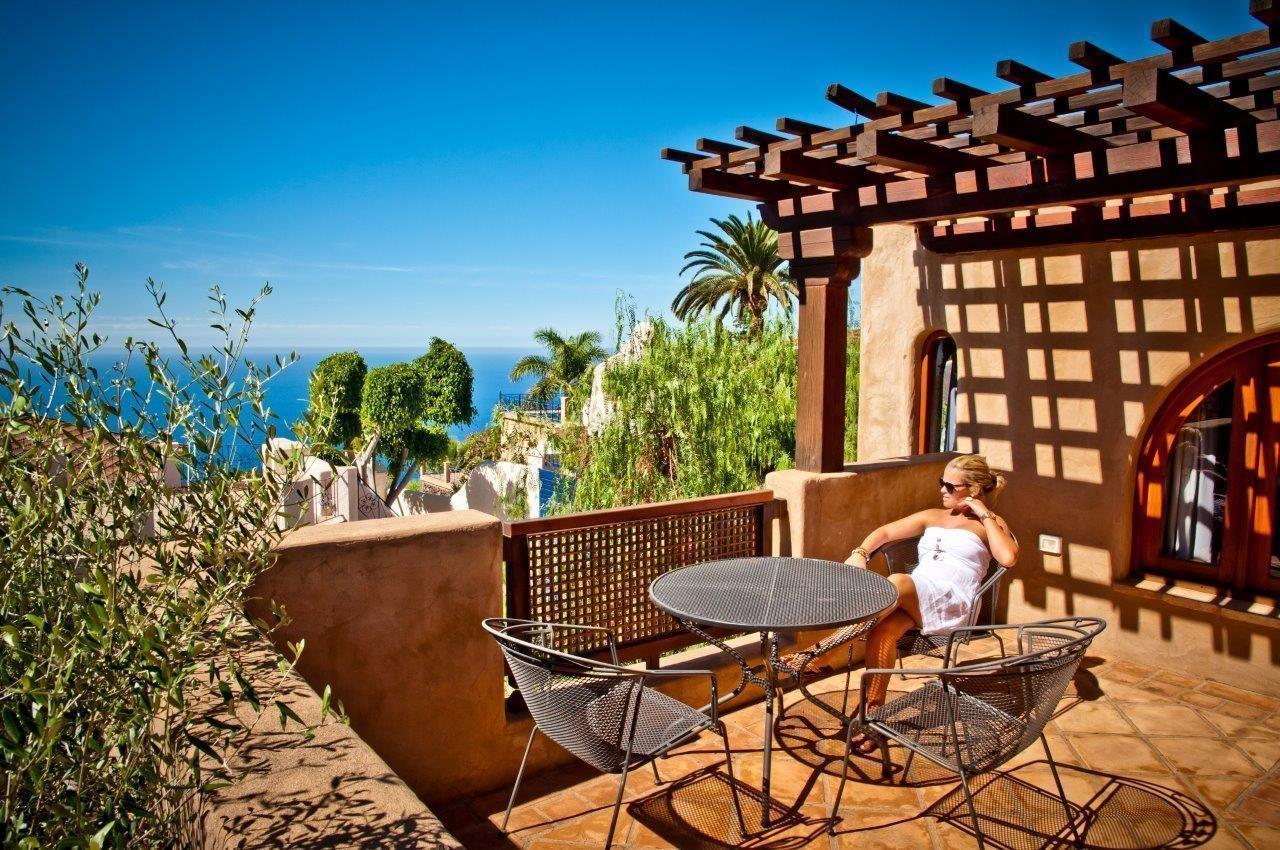 Luxurious bungalow with a balcony, a swimming pool and a sauna above the ocean on the cliff coast of La Matanza and above the natural reserve Costa Acentejo; with stunning views over the Pico del Teide