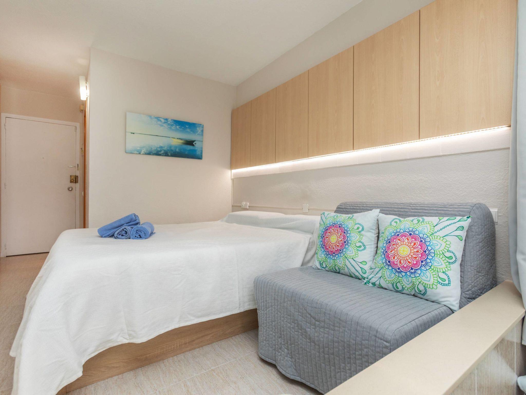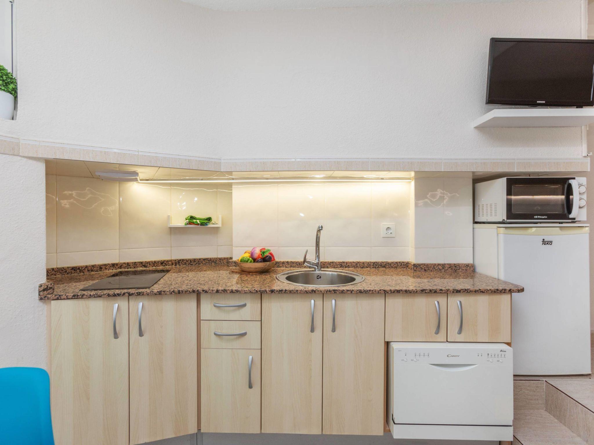 "Promar 696", 1-room studio 30 m2. Object suitable for 2 adults + 1 child. Simple furnishings: living/sleeping room with 1 bed (150 cm, length 180 cm), 2 folding beds (80 cm, length 180 cm), digital TV, air conditioning and boiler (50 litres). Kitchen-/living room (dishwasher, 2 ceramic glass hob hotplates, toaster, microwave, electric coffee machine). Shower/WC. Heating, air-conditioning. Facilities: washing machine, iron, hair dryer. Please note: fridge without freezer. HUTT-014210 // Reg. Nr.: ESFCTU00004302400020972500000000000000HUTT-014210-896