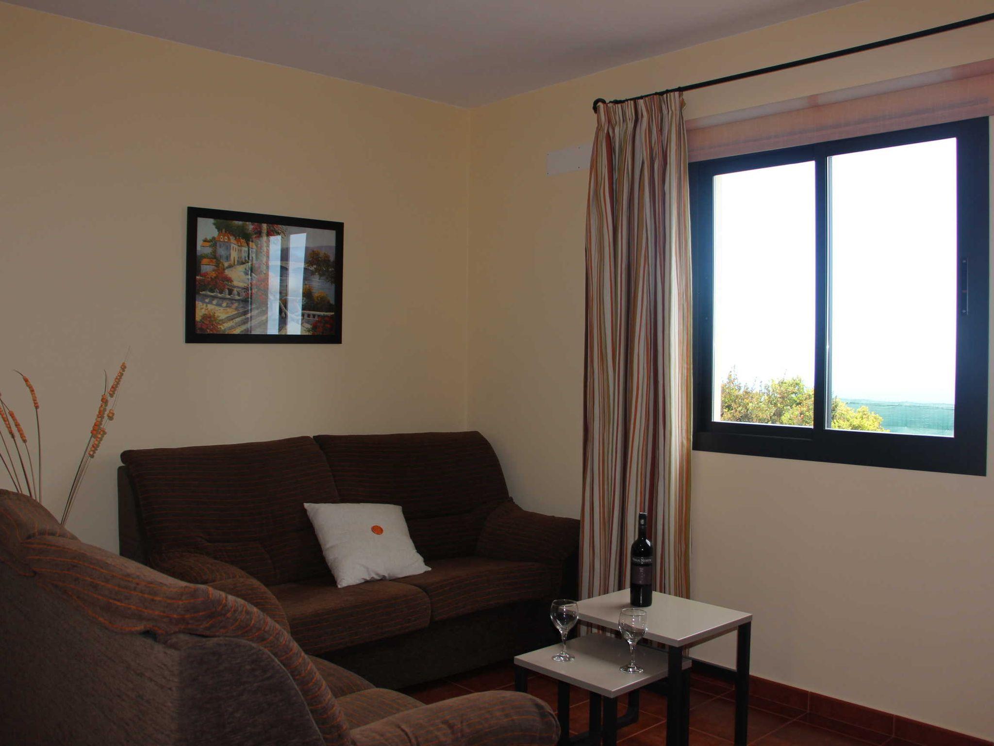 Casa Luque bietet auf 70qm Wohnfläche Platz für 4 Personen und ein Baby. Das größte Zimmer unterteilt sich in einen Wohnbereich mit zwei Sofas und gegenüberliegenden Einbauwand inklusive Flatscreen-TV und den Koch-/Essbereich mit einer kleinen, aber gut ausgestatteten Einbauküche sowie Esstisch mit 4 Stühlen. Vom Wohnzimmer blickt man in den schön angelegten Garten und aufs Meer.