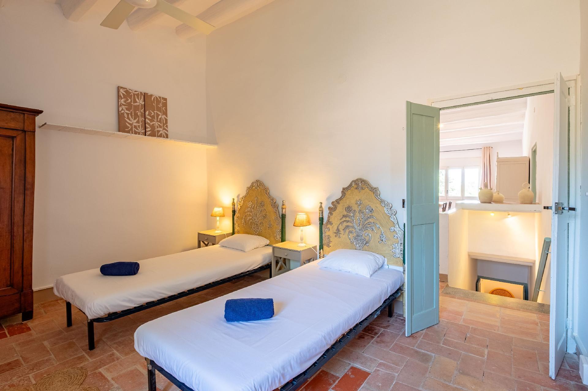 All the bedrooms have windows with mosquito nets and fans, with high ceilings on the upper floor and floor fans on the ground floor.
