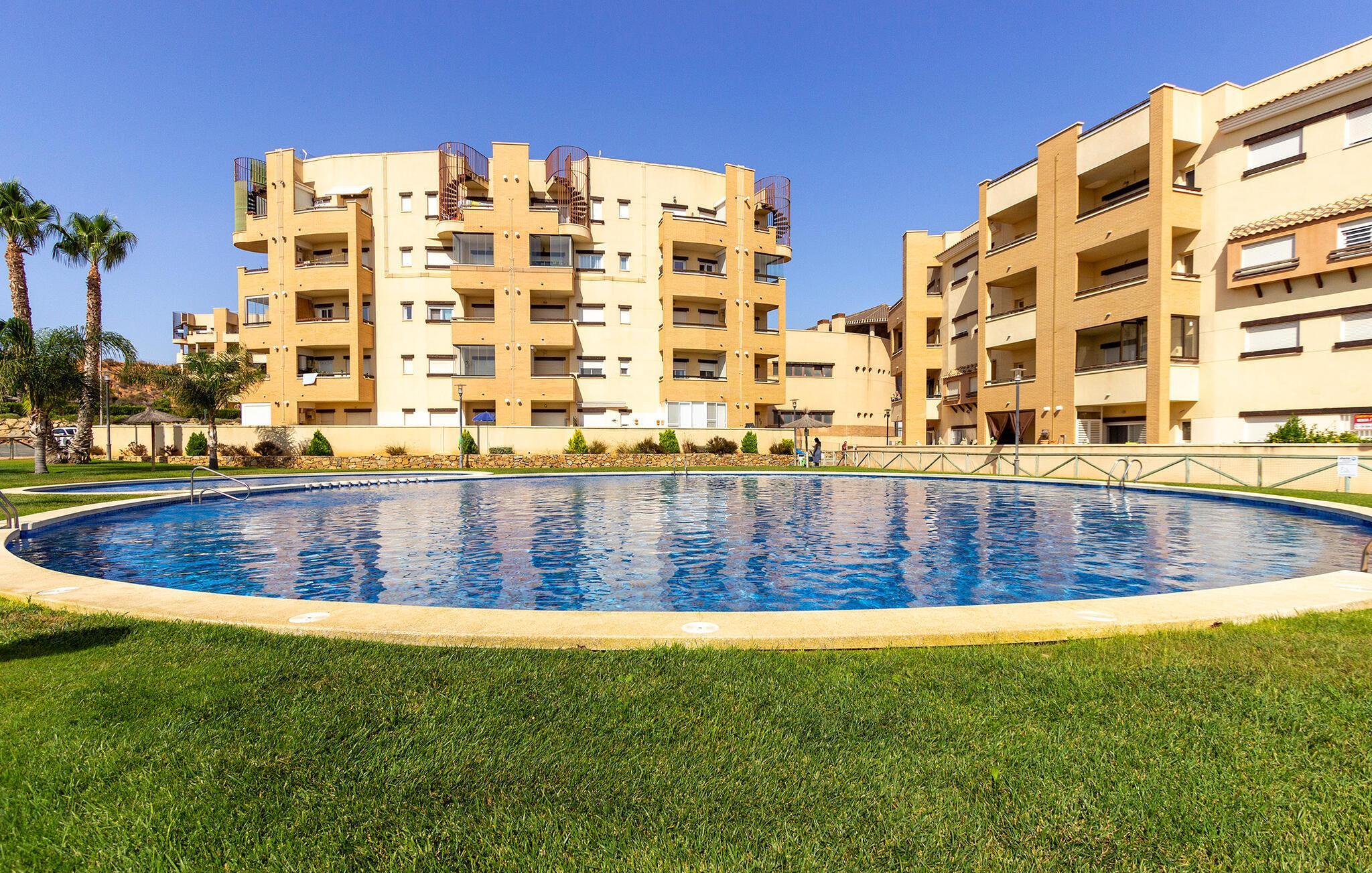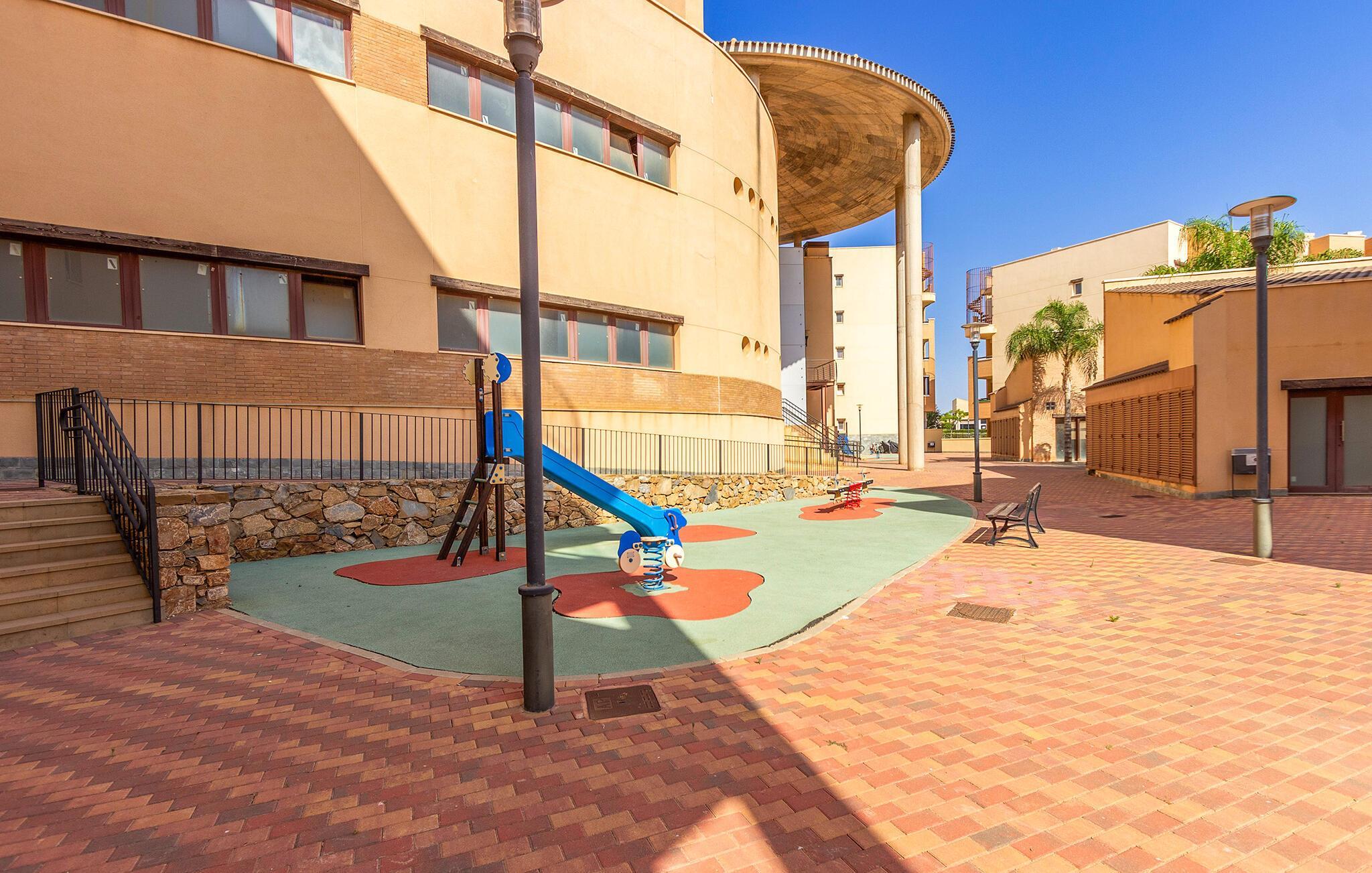 Vom Wohnbereich gelangen Sie direkt auf die private Terrasse, wo Sie den Morgenkaffee genießen oder abends mit der Familie entspannen können. Die gepflegten Gemeinschaftsbereiche laden dazu ein, die Sonne am Pool zu genießen und im Schatten des Spielplatzes zu spielen.