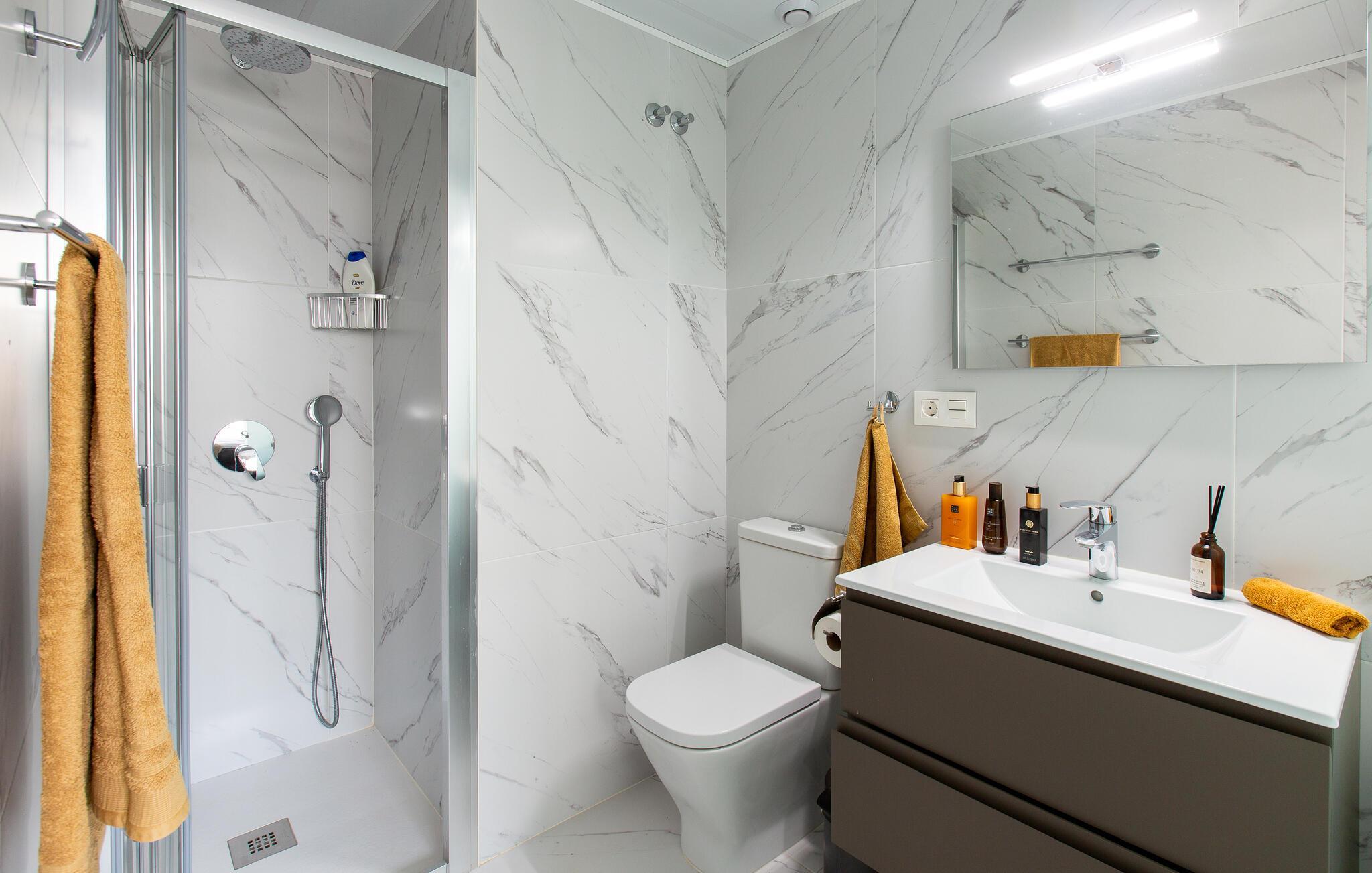 Badezimmer (nr. 1) - WC. Warmes und kaltes Wasser. Dusche