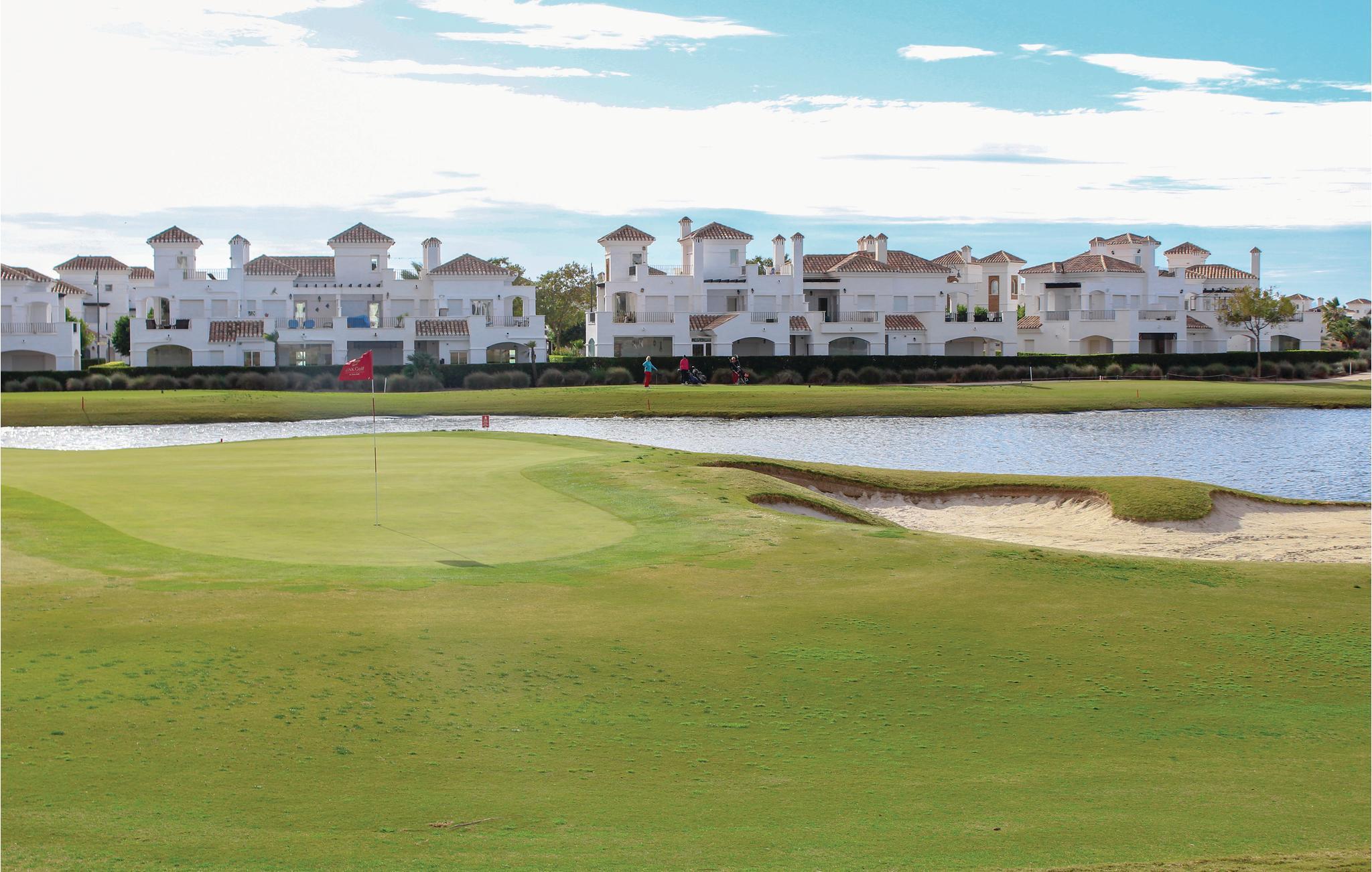 Die geräumige Terrasse bietet einen tollen Blick auf den See des Golfplatzes und die Gemeinschaftsbereiche mit mehreren Pools sind nur 100 m entfernt.