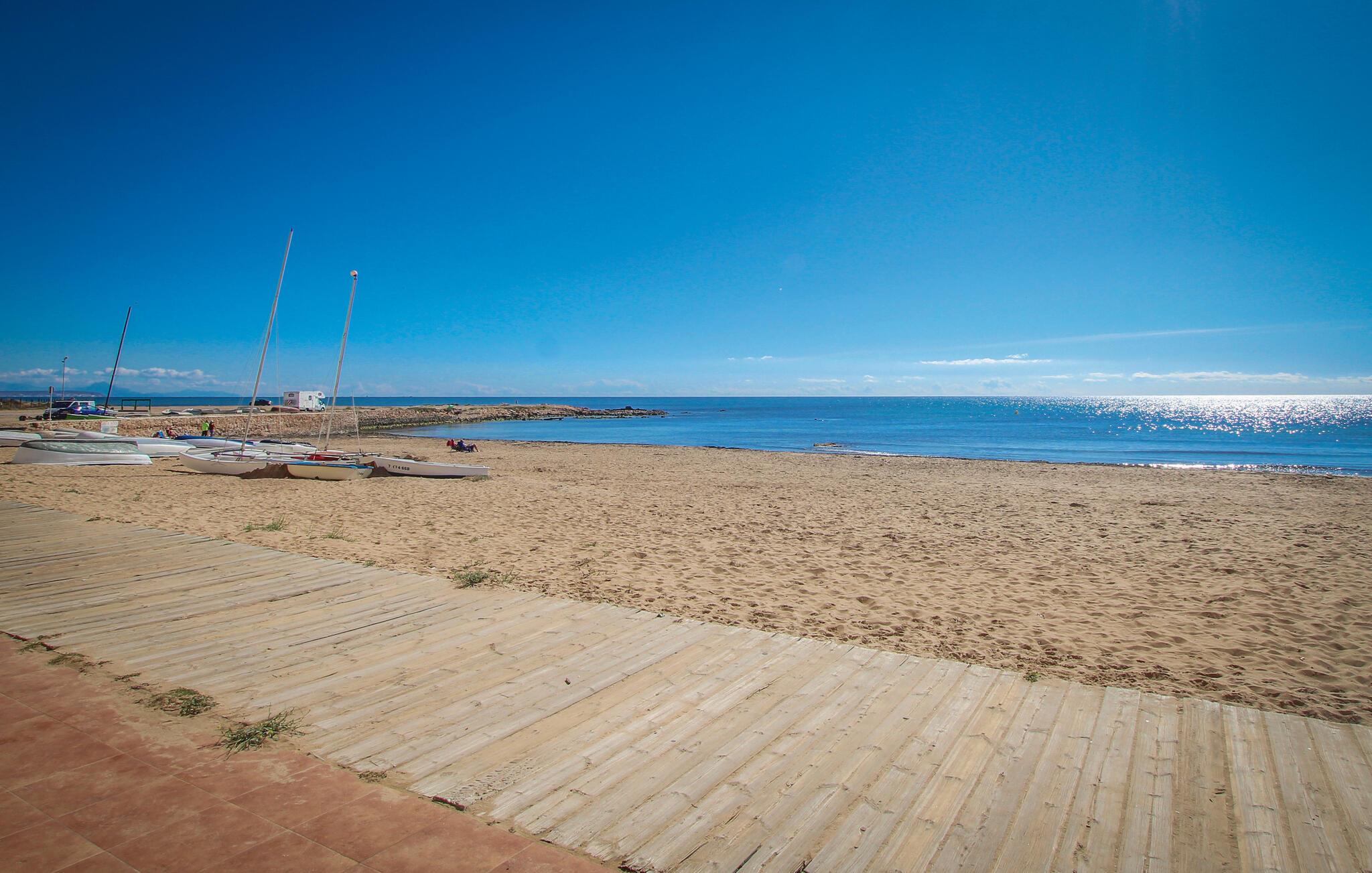 Schlendern Sie zum Strand und lassen Sie sich vom feinen Sand und dem türkisblauen Wasser verzaubern. Flanieren Sie entlang der malerischen Küstenpromenade, die sich ideal für entspannte Spaziergänge oder sportliche Joggingrunden eignet. Für Golfliebhaber bietet sich eine Runde auf einem der renommierten Golfplätze der Region an. Machen Sie einen Ausflug ins historische Orihuela oder zur Salzwasserlagune von Torrevieja, wo sich spektakuläre Naturbeobachtungen machen lassen.