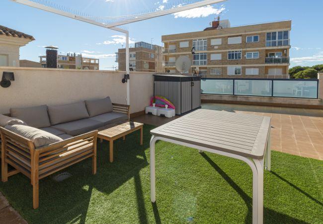 The Penthouse has 2 bedrooms, a smaller terrace on the same floor and a very large solarium of 70 square meters, where you can enjoy the good weather that we have throughout the year , a barbecue or a nice dinner with your family or friends .