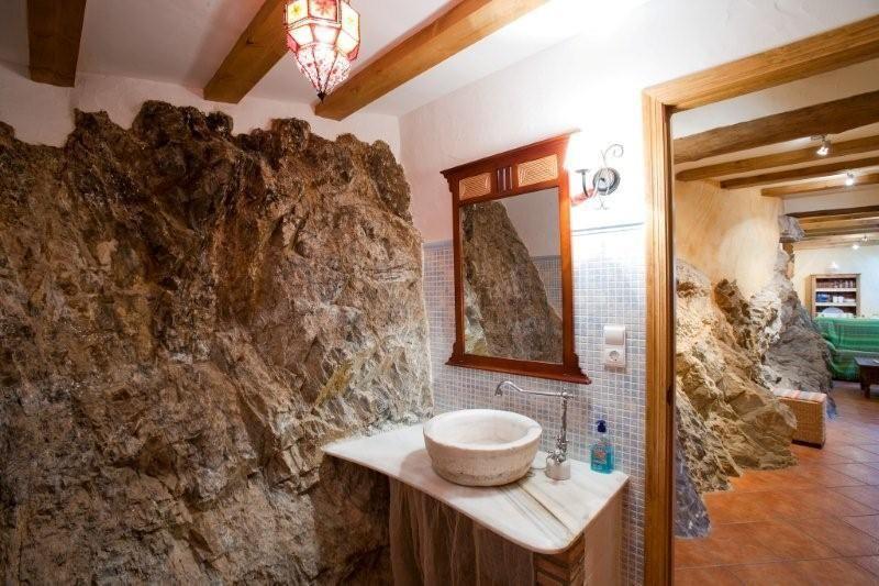 What distinguishes this house from all the others is the rock wall that runs through the living room, the hallway and even the bathroom. The house has two bedrooms, each with a double bed (150 cm and 135 cm wide). As a special feature, there is a room with a small pool (whirlpool) and a 50-inch flat screen TV. There are also two bathrooms with shower. The kitchen with living area has a surface area of 30 m². The kitchen is equipped with a microwave, toaster, ceramic hob, coffee machine, fridge and kettle. The living room has a TV, fireplace, DVD player and many games and travel guides. There is an extra room with washing machine.