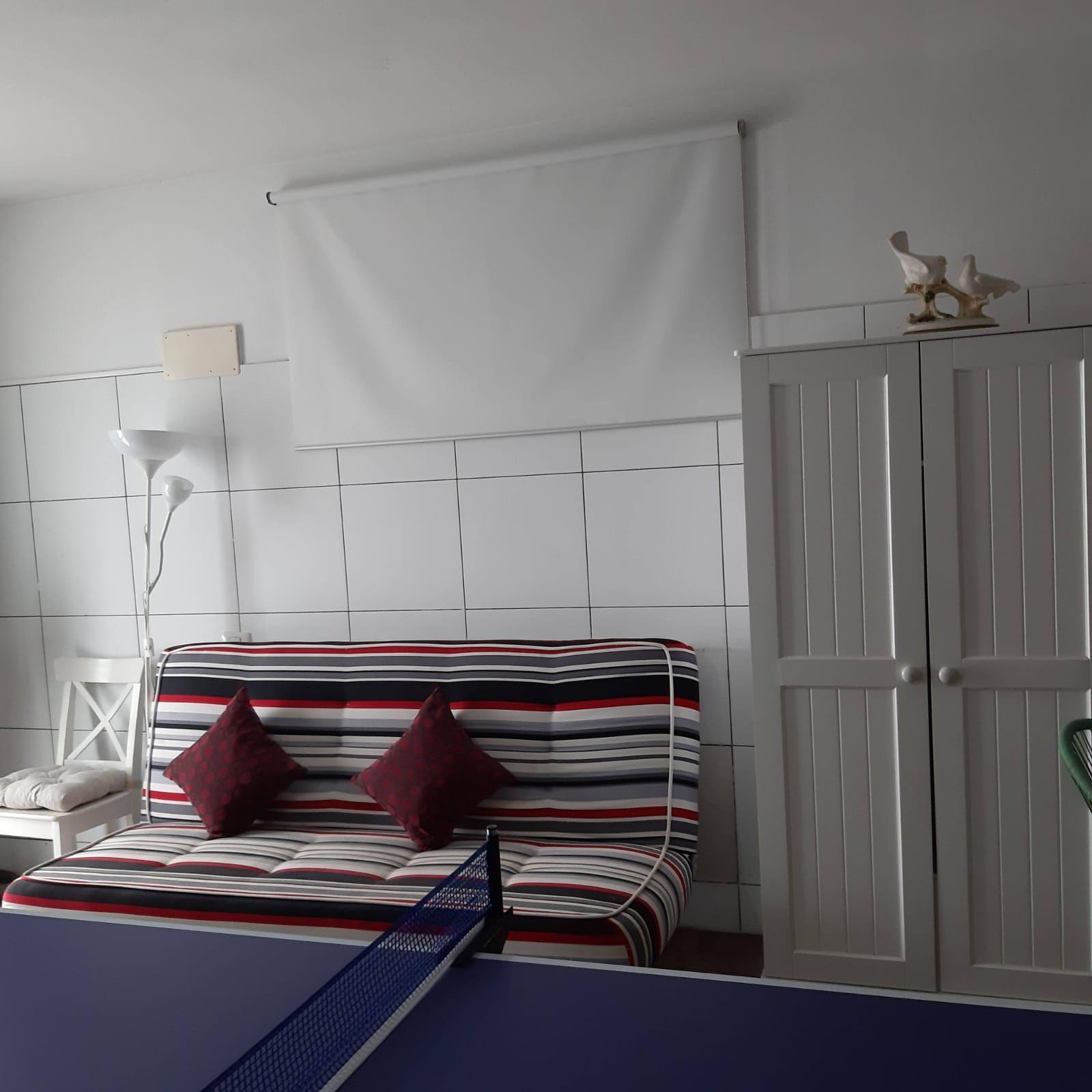 Living area: Analogue-tv; Double sofa; Iron; Satellite-tv; TV