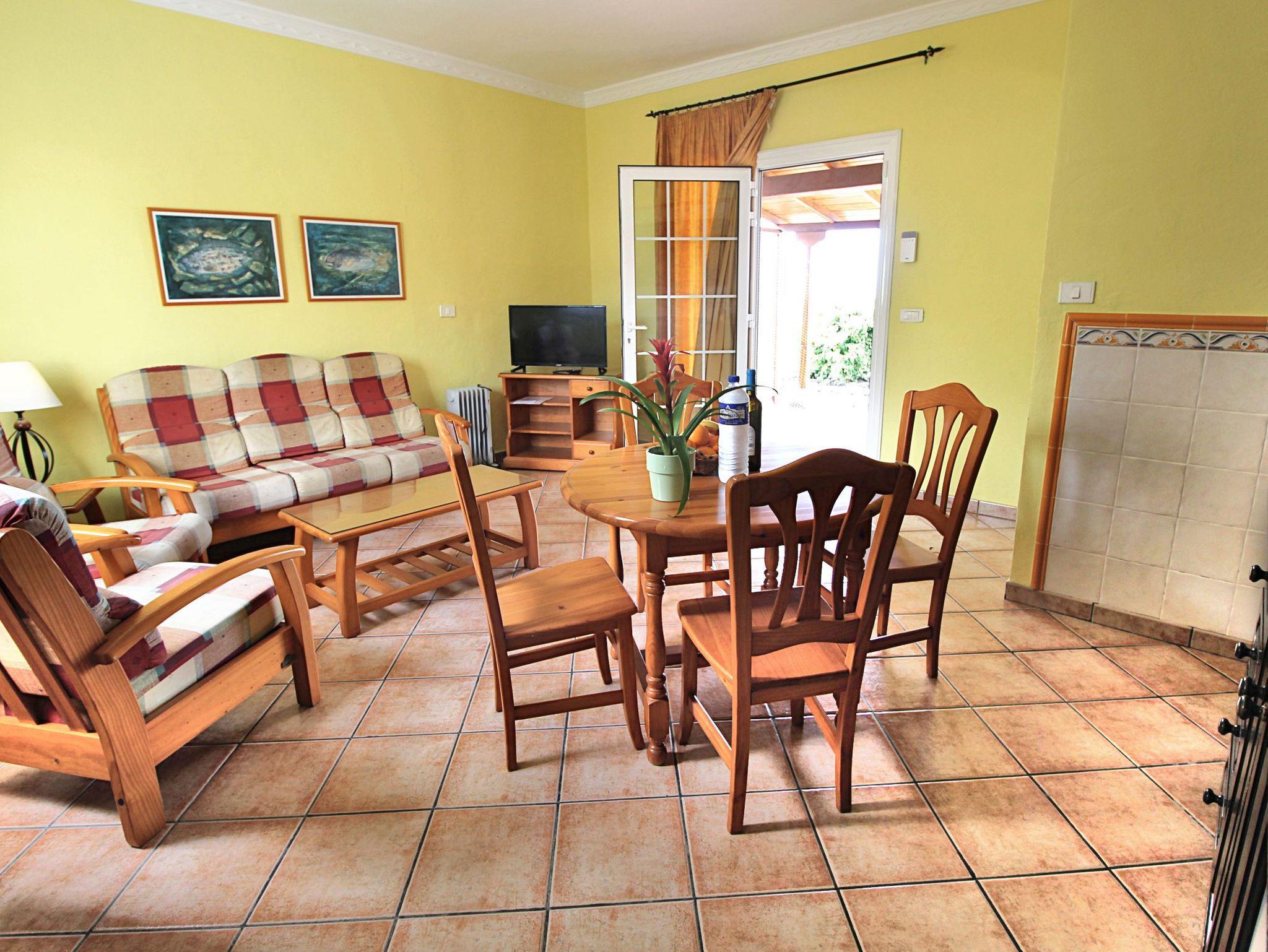 Jede hat eineTerrasse mit Meerblick, von der aus man den Wohnraum betritt. Dort finden Sie eine Couchgarnitur, einen Fernseher mit Deutschen Kanälen sowie eine einfach ausgestattete Küchenzeile. Am runden Esstisch finden vier Personen Platz. Ein Flur mit Einbauschrank führt zu den beiden Schlafzimmern und dem Bad.