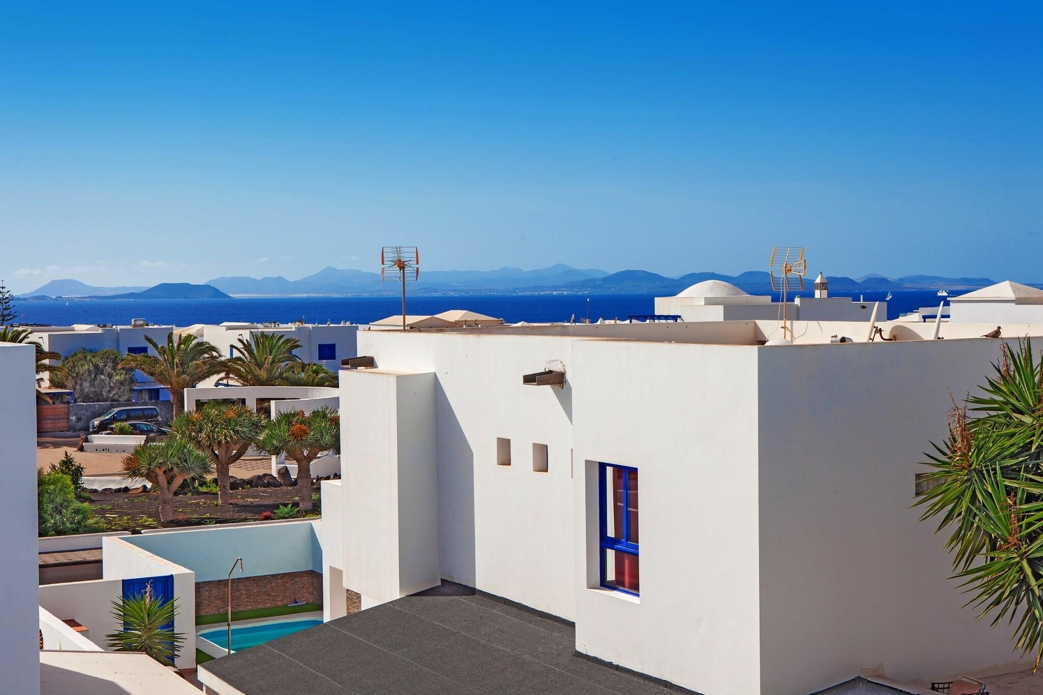 Just a few steps from the small shopping centre of San Marcial de Rubicon is this holiday home in Playa Blanca's Las Palmas is renovated in 2022 It is very close to the splendid Marina of Rubicon with its trendy restaurants and bars and its superb shops. The home's terrace offers a breathtaking sea view and is located on the island of Fuerteventura near the ocean and beaches. This house's surroundings are equally enriching as there is a bicycle rental, buggy, kayaks, horse riding, Timanfaya National Park, Cueva de los Verdes caves, Cactus Garden and a César Manrique Foundation to explore at leisure. The house is composed of a new, fully-equipped kitchen with a Nespresso coffee machine, a living room with a library and TV, free WiFi, a separate dining room, an office area, access to the furnished garden with deckchairs and an outdoor lounge and a private swimming pool. The first floor has a master suite with king size bed and a furnished terrace.