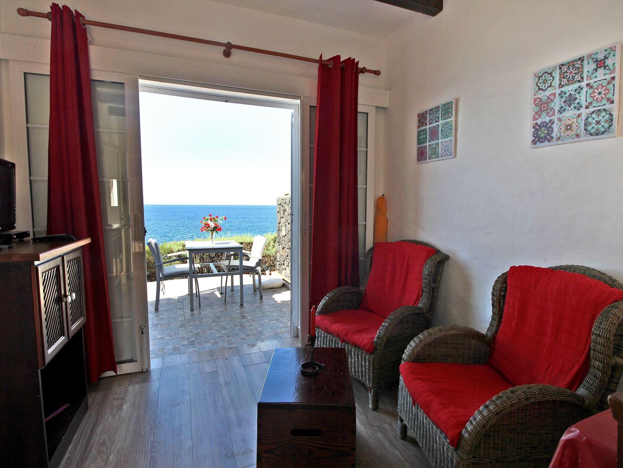 Sie ist nach Süden, Richtung Strand / Fuencaliente ausgerichtet, man blickt direkt auf den Atlantik. Zur Einrichtung gehört hier ebenfalls ein Sofa.