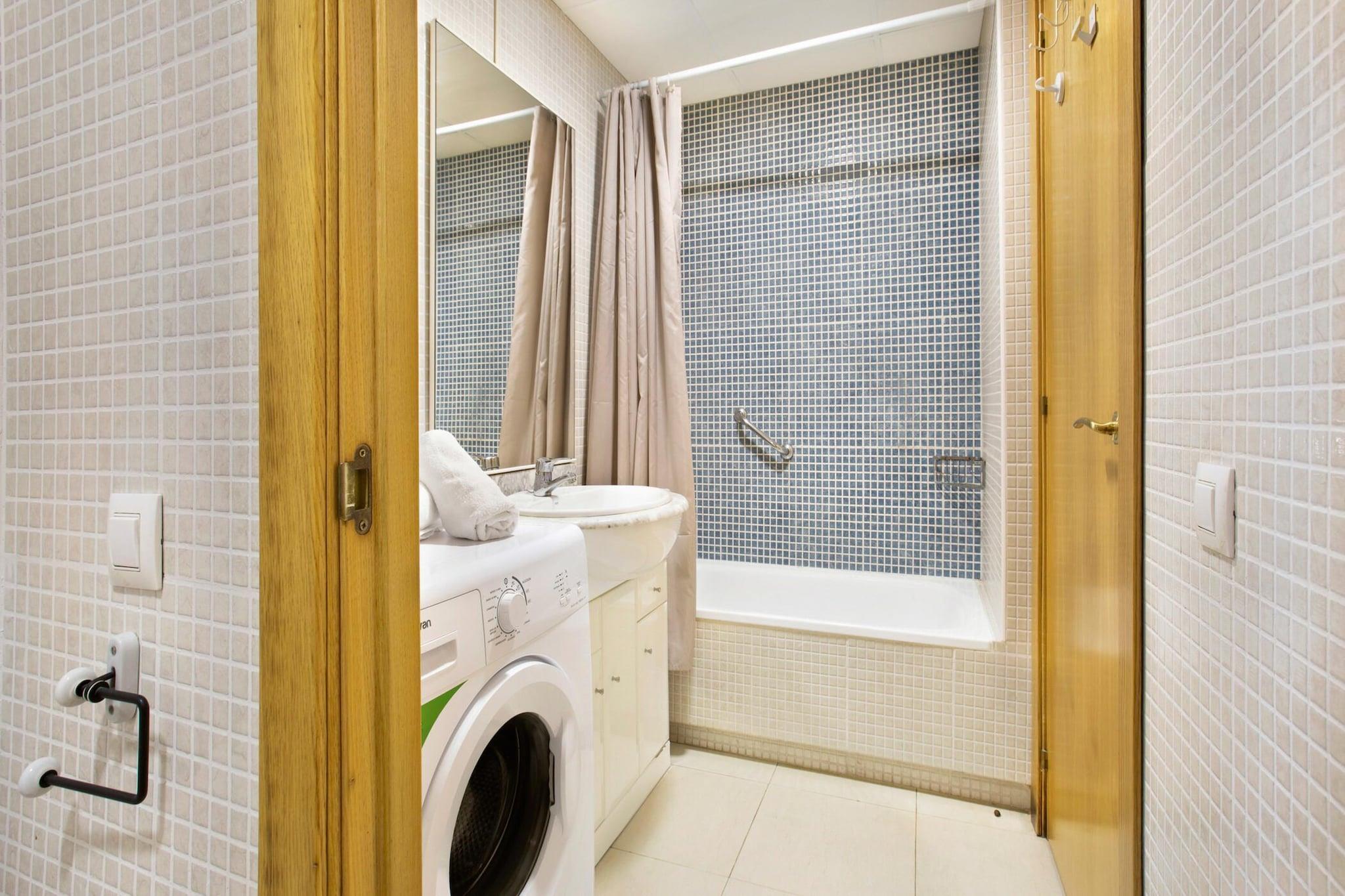 This cozy 40m² apartment is located in the heart of Lloret de Mar, just 400 meters from the beautiful Fanals Beach and close to the city center. Perfect for families, the apartment is situated on the ground floor of a residential area and offers access to a communal garden and swimming pool. The living-dining area features a sofa bed and opens up to a fully equipped kitchen with a ceramic hob, fridge, freezer, oven, and more. The bedroom has a comfortable double bed, and there’s a bathroom with a bathtub, as well as a washing machine for added convenience. The apartment also boasts a lovely terrace with garden furniture, ideal for enjoying sunny afternoons and al fresco dining. For additional comfort, optional air conditioning is available at an extra cost of EURO30/week. The property is located in a peaceful neighborhood, providing a relaxing atmosphere while being just a short walk from the beach and local amenities. This apartment is exclusively for families, with no bookings accepted from young groups under 35 years old. Pets are not allowed, ensuring a quiet and family-friendly environment. Enjoy your stay in Lloret de Mar, where you’ll be close to the beach, shops, and restaurants, all within walking distance.
