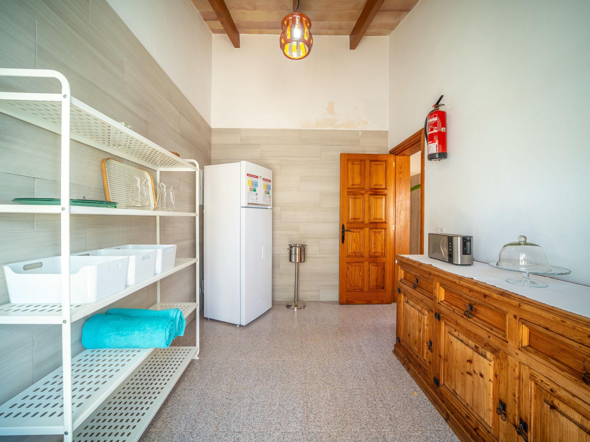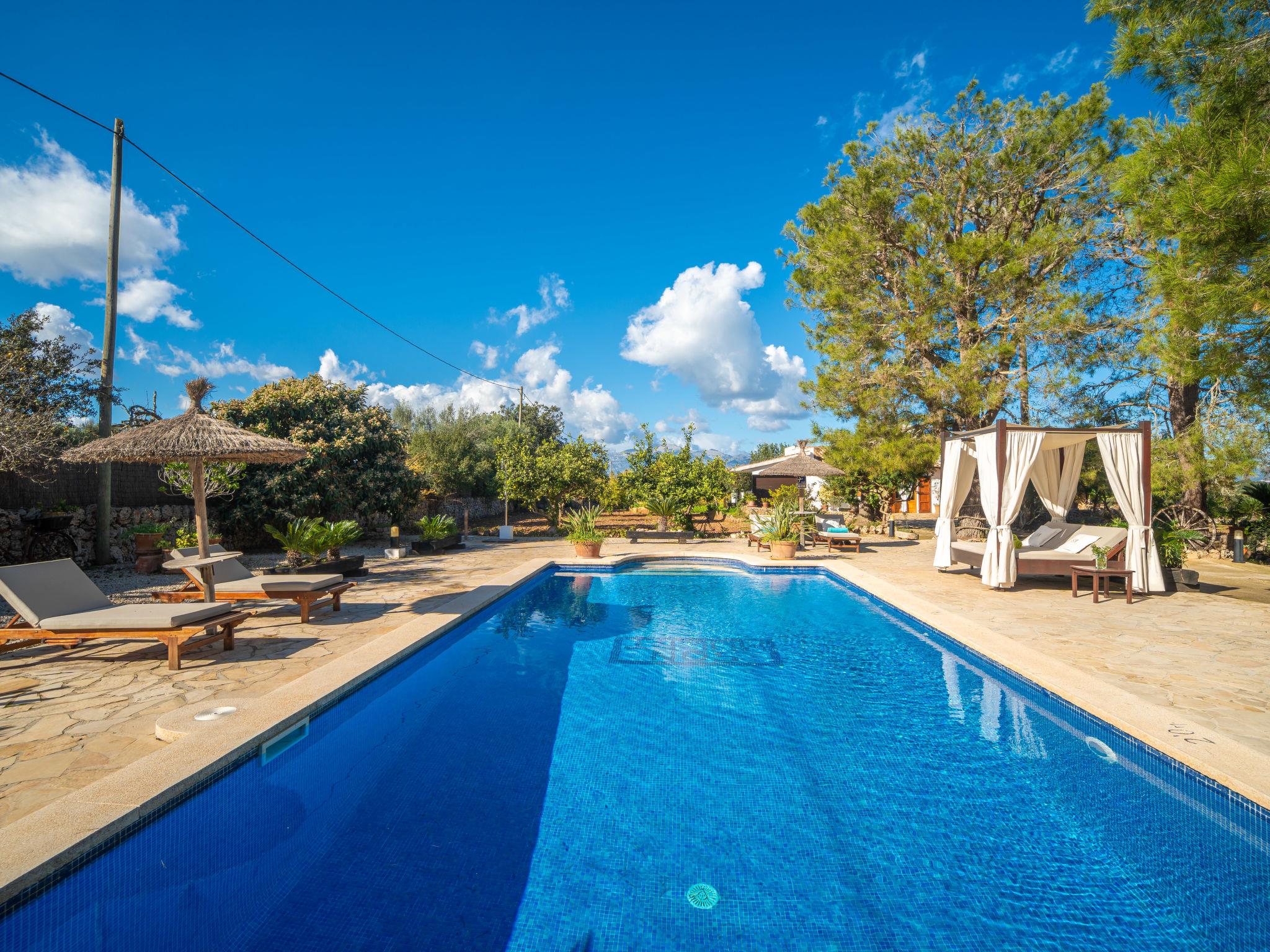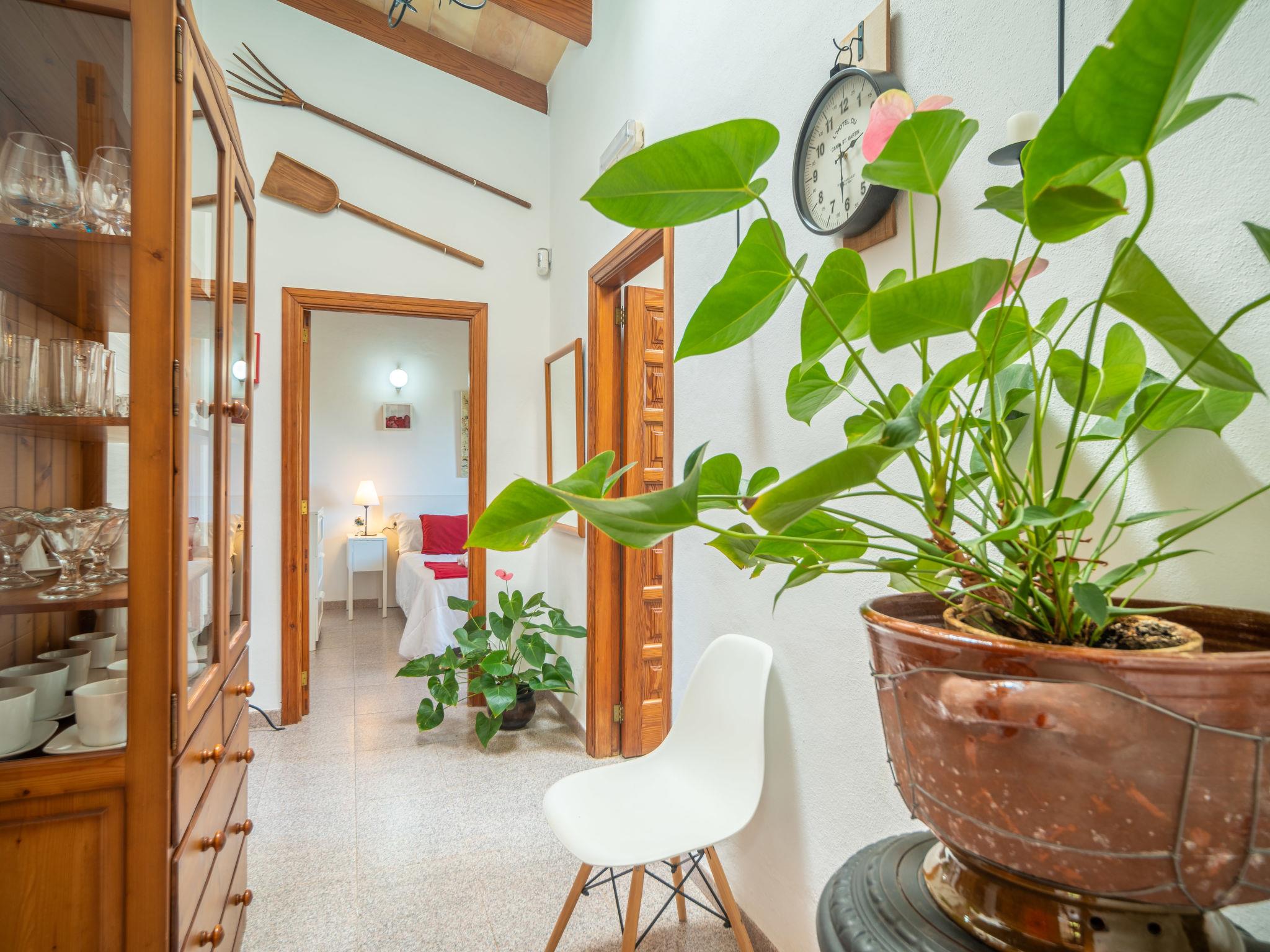 Beautiful, cosy, rustic house "Son Mulet", surrounded by trees. Outside the resort Llubí, in the countryside. Private: property 12'000 m2, garden with swimming pool secured (10 x 4 m, depth 120 - 200 cm, seasonal availability: 01.Jan. - 31.Dec.). Outdoor shower, pergola, terrace, garden furniture (swing), pool maintenance by the owner/gardener. In the house: WiFi, washing machine. Roofed, parking. Shop 2 km, supermarket 2 km, restaurant 2 km, bus stop "Llubi" 3 km, sandy beach 20 km, swimming bay 20 km. Tennis 2 km. Please note: car recommended. Baby equipment on request (included). The owner does not accept any youth groups. Loading and unloading of baggage is possible at the holiday house. Motorway close by 8 km from the property. Airfield 40 km from the property.