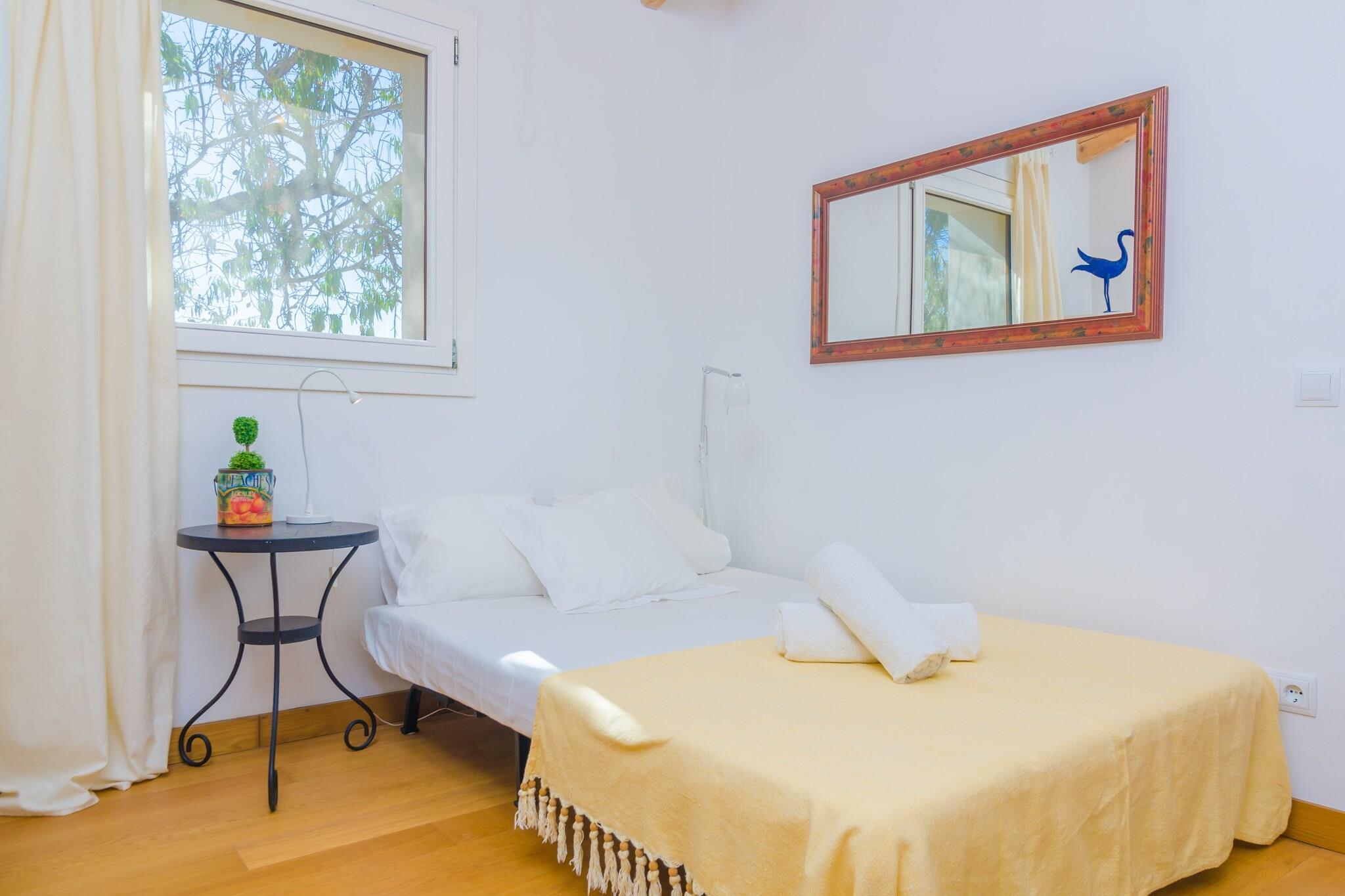 Take a refreshing dip in the 10 x 5 metres private salted pool which has a depth between 1.1 and 1.8 metres. Enjoy the sun and the great Mediterranean weather on one of the sunbeds or take a vermouth in the seating area by the house. At the other side of the house you can also take a cup of coffee under the awning while admiring the countryside views. You can also prepare a delicious barbecue for dinner. The property is fenced and privacy is total. The house has a simple and modern style with rustic details which create the serenity you need to disconnect during your vacation. The ample hall with access from the terrace connects with the living room where you can rest on the comfortable sofas admiring the views of the pool. The dining area is by the living room. The modern kitchen offers a gas hob and oven, and also a dining area. You will also find a washing machine, and iron and an ironing board. The house also features another little living room to watch satellite television (only English channels). The house has 3 bedrooms. The first one has a double bed, a dressing room, a fan and an en-suite bathtub bathroom. The second bedroom has a bunk bed for two people, another single bed, a wardrobe and a fan, and is accessed only through the last bedroom, which has only a single sofa bed for the sixth guest. Finally, from this last bedroom you can access to the second bathroom of the house, also with a bathtub. We can prepare a cot and a high chair if you are travelling with a baby. There is a washing machine, an iron and an ironing board. This house is located in Llucmajor, where you will find all services for an independent stay such as supermarkets, restaurants, shops, and a great street market to buy local products on Wednesdays, Fridays, and Sundays. The nearest beach is Sa Ràpita / Es Trenc, where you will revel in the turquoise waters and the fine sand. If you like golf, the nearest course is only 13.8 km away. Note: This accommodation is intended for families and guests over 30 years old who are looking for a peaceful stay. Bookings for parties or celebrations are not accepted. A copy of the identification document of all guests will be required to confirm the reservation. Consult the advertiser for possible charges. Pets are not allowed. The holding of events is forbidden. There is exterior parking for 3 cars. Distances Beach: 12 km - Sa Ràpita/Es Trenc Airport: 25.7 km - Aeroport de Palma Golf course: 13.8 km - Son Antem Town: 7.7 km - Llucmajor Train station: 33.8 km - Palma Bus stop: 7.7 km - Llucmajor Ferry: 36.2 km - Port de Palma Hospital: 30.6 km - Son Llatzer Tourist license: ETV/8772Single Rental Registry: ESFCTU00000701800030206500000000000000000002080/20177The Ecotasa (tourist tax) must be paid cash on site when checking in. The amount varies between 0.55EURO/night and guest during the low season and 2.2EURO/night and guest during the high season. The tax is reduced by half from the 9th day of your stay. All guests have to pay the Ecotasa, except people under 16 years. You will have to pay the deposit amount at the arrival to the owner.