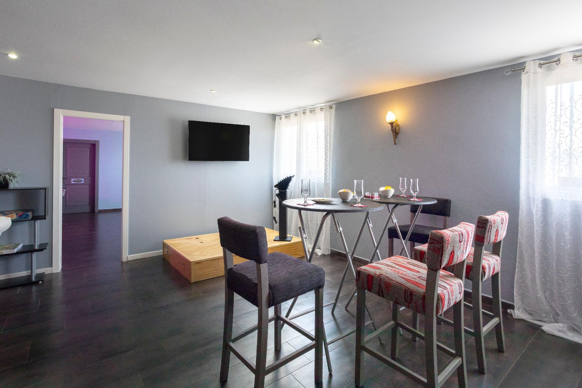The interior is carefully designed for your comfort and enjoyment. It has six rooms with double bed, terrace and private bathroom equipped with both shower and bathtub, a room with two double beds and bathroom, and a family room with capacity for up to two adults and four children, also with private bathroom. In addition, all our facilities are designed for your fun and relaxation, including a spa area with Turkish bath, sauna, whirlpool bath, games room, karaoke, and a fully equipped kitchen so that nothing is missing during your stay.