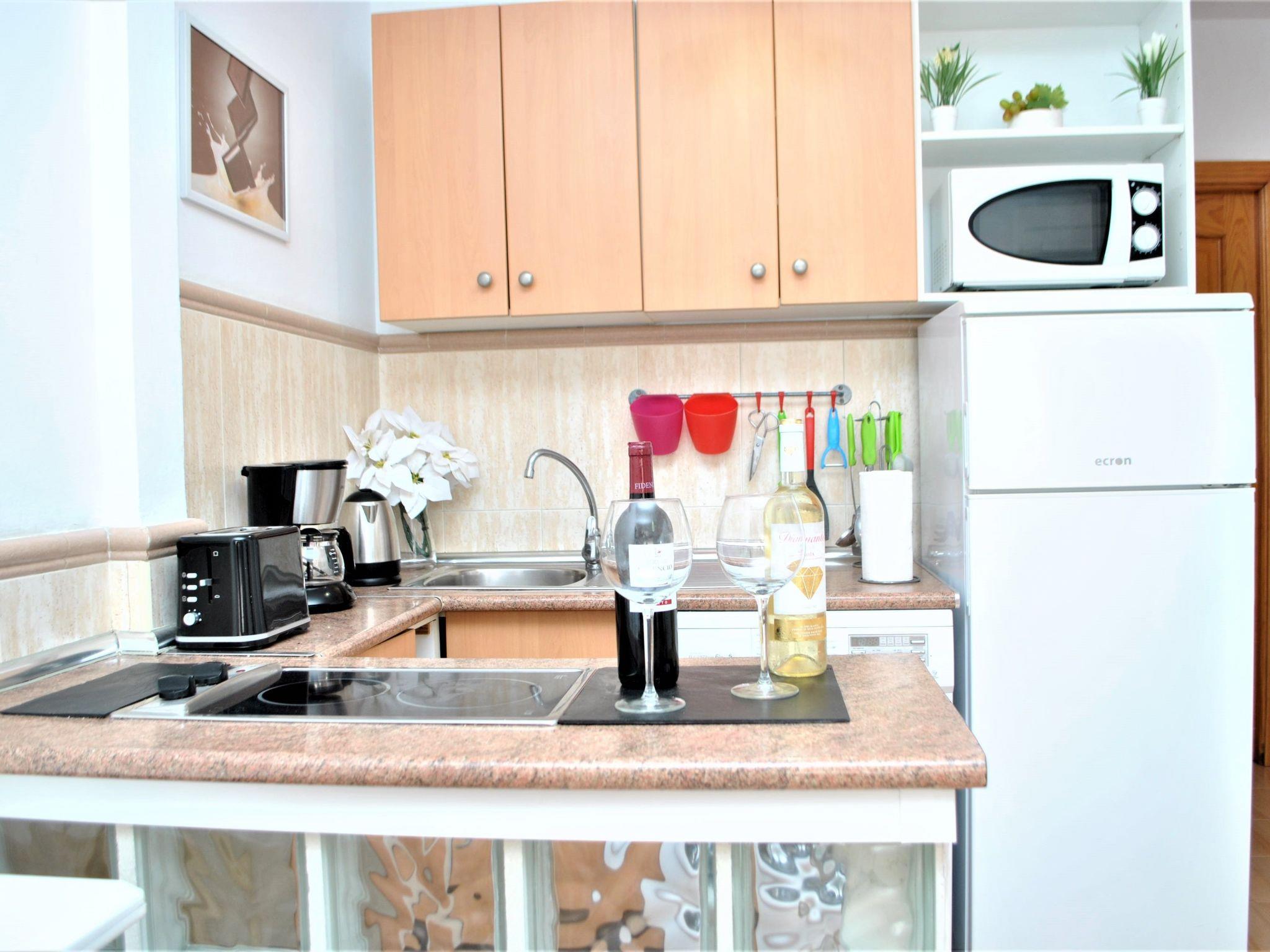 2 bedroom apartment 1 bedroom with a bed of 140 (sheets, blankets )- 1 bedroom with 2 beds of 90 (sheets, blankets )- Fully equipped kitchen: microwave, fridge, freezer , washing machine-Living room with sofa - TV DVD- Bathroom with shower and linen-Outdoor patio in the apartment. Air conditionné et chauffage dans toutes les chambres et le salon. Number Registro Turismo Andalucia:VFT/MA/01112