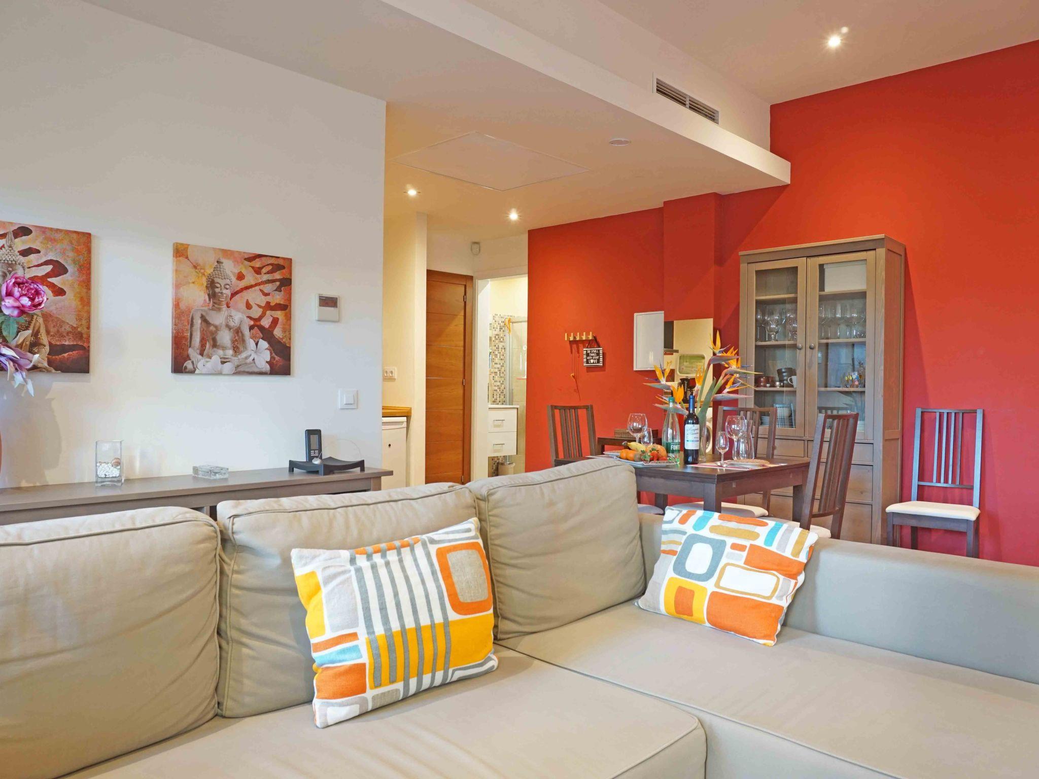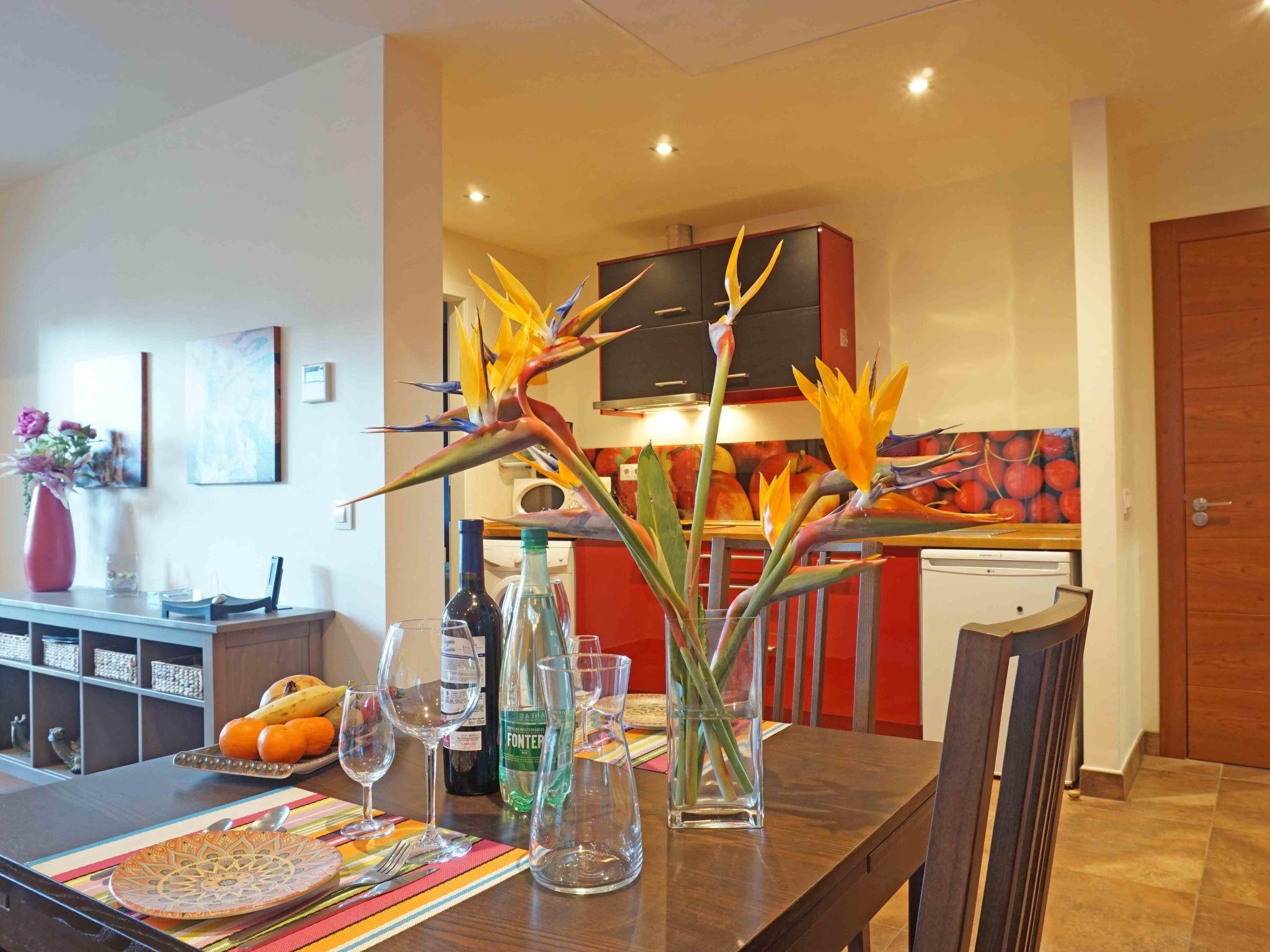 The flat is located on the first floor and therefore on the same floor as the second flat. Partition walls ensure your personal privacy. Neither side of the partition walls has any points of contact with the other flat. Great attention was paid to quality and perfection when furnishing the flat with a living space of 65 m². Take the lift to the first floor in comfort or take the stairs that lead up from the beautifully designed entrance courtyard. The 36 m² living room offers you a cosy seating area where you can relax on the comfortable sofa after an eventful day. Just behind the sofa is a small dining table for two, which is connected to the kitchenette. This is equipped with a cooker, fridge with freezer compartment, microwave, coffee machine, kettle and washing machine. The separate 18 m² bedroom is located to the left of the kitchen and has two single beds (90 x 200 cm) and a wardrobe. The bathroom, which is to the right of the kitchen, has a washbasin, shower, WC and hairdryer. The comfortable facilities also include solar-heated water, central heating and air conditioning throughout the flat as well as Internet access via WLAN.