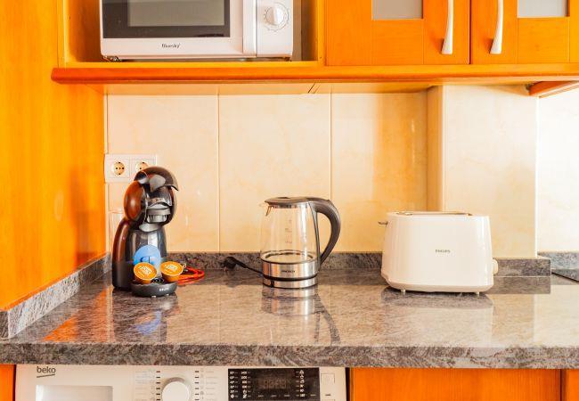 Access to the building is communal via card, with the option of lift or stairs, and features a reception corridor with a built-in wardrobe to easily organise your luggage. The living-dining area is bright and comfortable, equipped with air conditioning, a spacious sofa and television (not a Smart TV, so we recommend bringing an HDMI cable or Chromecast for internet connection). The American-style kitchen is fully equipped with modern appliances such as ceramic hob, combi fridge, oven, microwave, washing machine, dishwasher, coffee maker, toaster and more, so you can prepare your meals without any problem. ?
