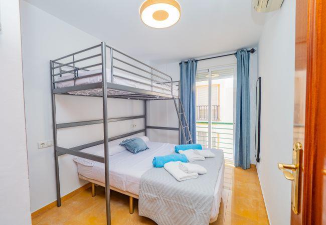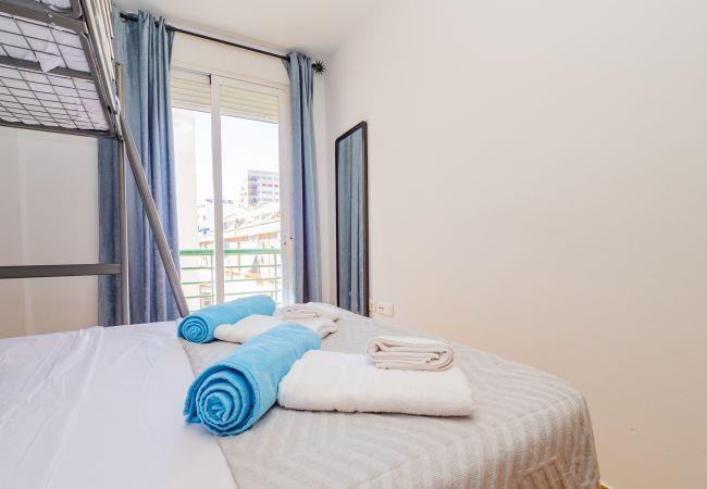 The bedroom has a bunk bed for three people, with a double bed below and an exterior window that provides good natural lighting and urban views. In addition, it has a built-in wardrobe to keep your luggage organized. The bathroom has a small-sized bathtub for your comfort.