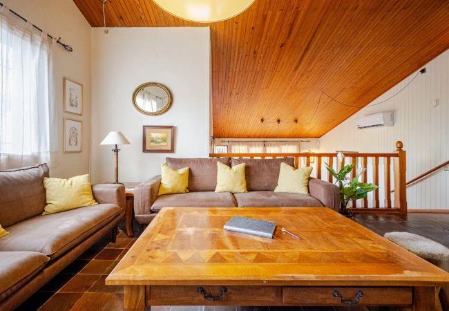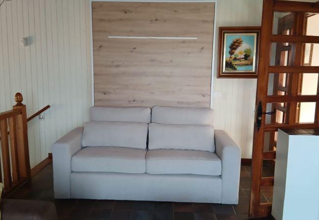 The double-height living room features two comfortable sofas, a television and a spacious dining area, perfect for family or friends gatherings. Additionally, the house has 6 bedrooms, including 3 double rooms and 3 rooms with two single beds each and a vertical folding double bed in the living room, offering a peaceful space for all guests. For greater comfort, there are 4 bathrooms in total, three with shower and one with bathtub.