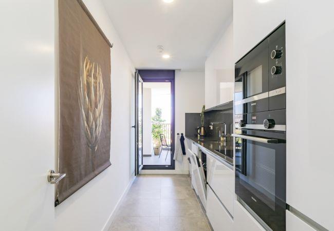 The apartment, with 90 m², is designed for 2 people and features a bedroom with 2 single beds, an exterior window and a spacious wardrobe. The independent kitchen is equipped with modern appliances such as an oven, microwave, fridge, dishwasher and more, ideal for preparing your favourite meals. The living-dining room is spacious, with a Smart TV so you can enjoy streaming and entertainment, and opens onto a 12 m² terrace where you can enjoy the sunrise and urban view.