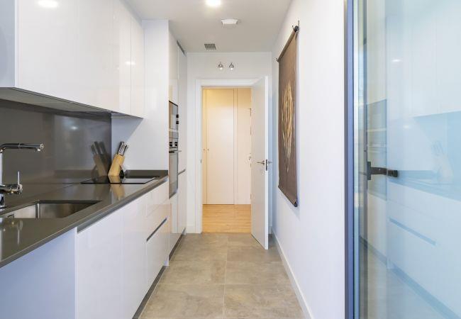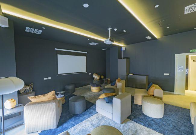 Enjoy the exclusivity and premium amenities: a rooftop pool (30th floor) with sun loungers to relax while taking in the panoramic views, as well as common areas including a projection room, coworking space, gym, and a children's play area. The pool will be closed from 15 September to 31 May, and access to the rooftop is subject to reservation and a maximum capacity of 30 people.
