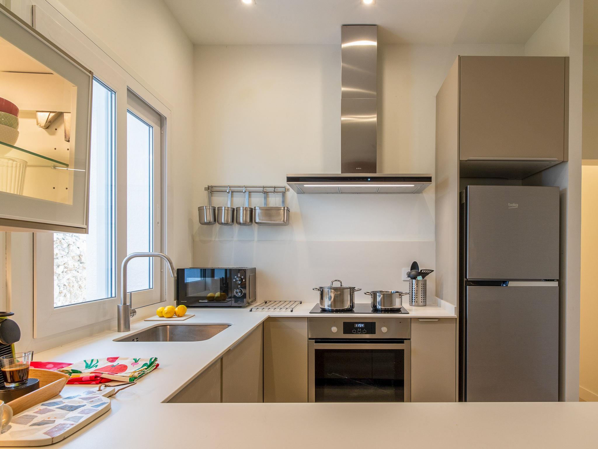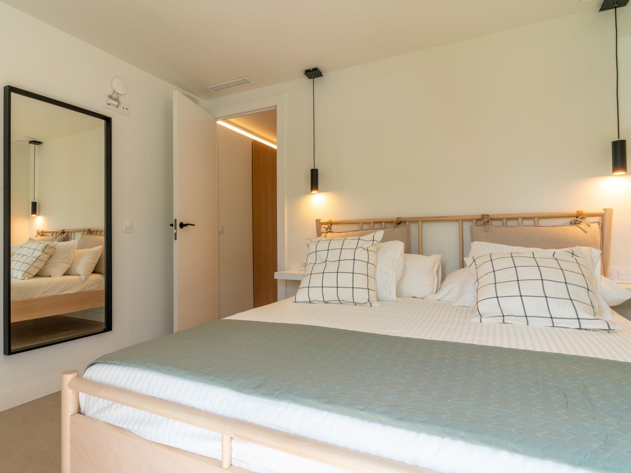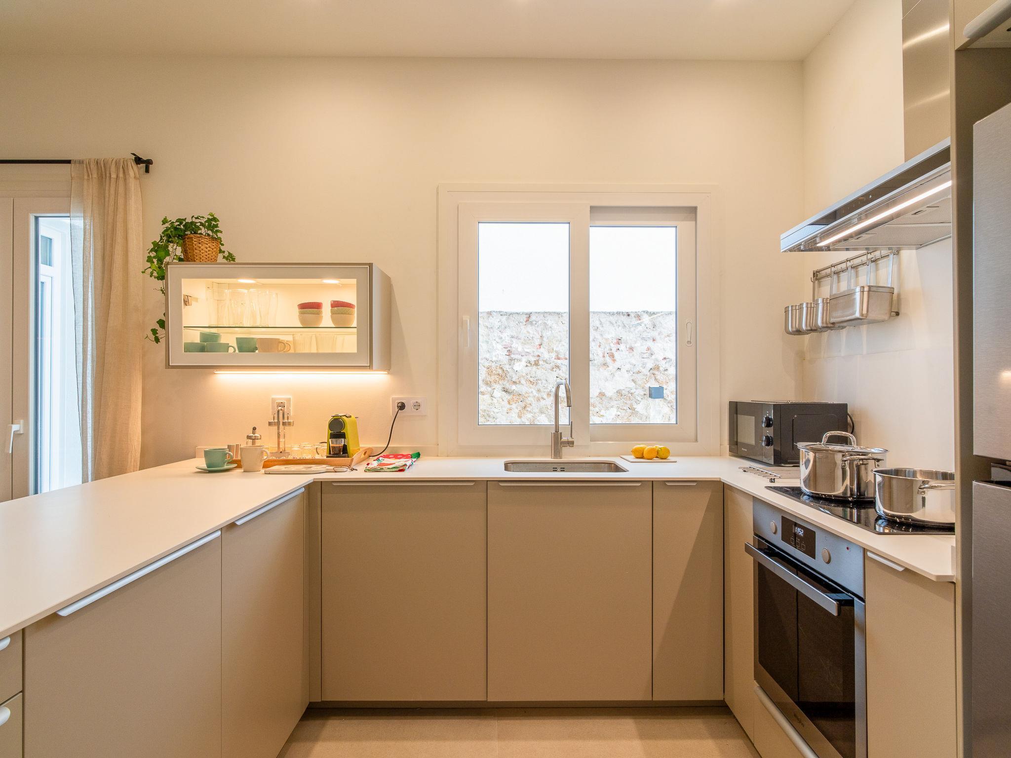 "Rita", 4-room terraced house 137 m2. Comfortable and modern furnishings: living/dining room with dining table and digital TV. 1 room with 1 french bed (160 cm, length 200 cm), electric heating and air conditioning. Exit to the garden. 1 room with 2 beds (90 cm, length 200 cm), electric heating and air conditioning. 1 room with 1 bed (80 cm, length 200 cm), 1 x 2 bunk beds (90 cm, length 200 cm), electric heating and air conditioning. Open kitchen (oven, dishwasher, 4 induction hot plates, toaster, kettle, microwave, electric coffee machine, Capsules for coffee machine (Nespresso) extra). 3 showers/WC. Patio. Terrace furniture, barbecue, deck chairs. Facilities: washing machine, iron, children's high chair, baby cot for up to 2 year olds, hair dryer. Internet (WiFi, free). Garage (1 car). E-charging station. Please note: suitable for families. Non-smoking house. HUTB-065983 // Reg. Nr.: ESFCTU00000809800028960200000000000000000HUTB-0659837